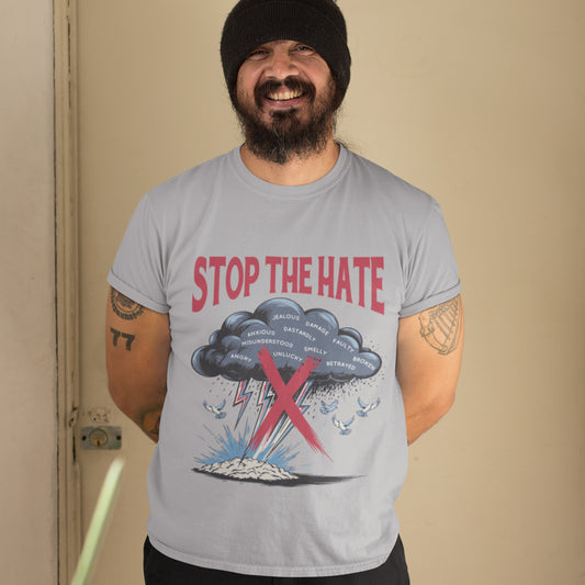 STOP the HATE | Black Cloud Striking Ground with Lightning Graphic T-Shirt