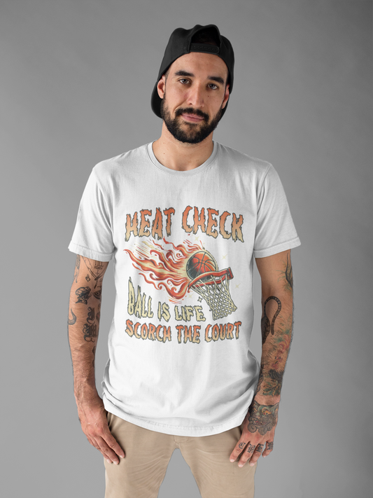 Heat Check Basketball Flames On Fire Scorch the Court Sports T-Shirt