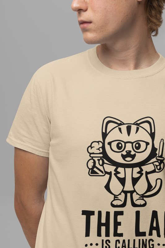 The Lab Is Calling and I Meowst GO Tshirt – Cute Scientist Cat in Lab Coat