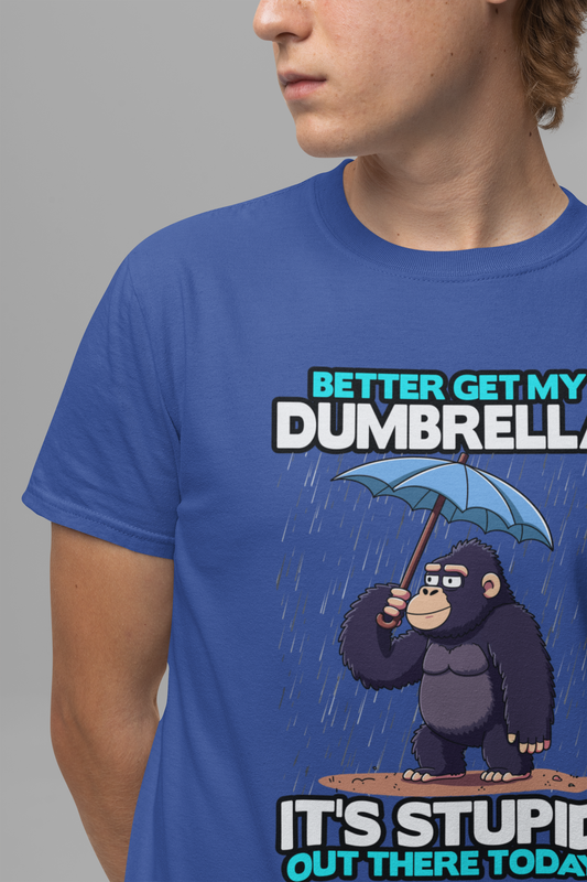 Better Get My Dumbrella Tshirt – Stressed Gorilla with Umbrella in the Rain
