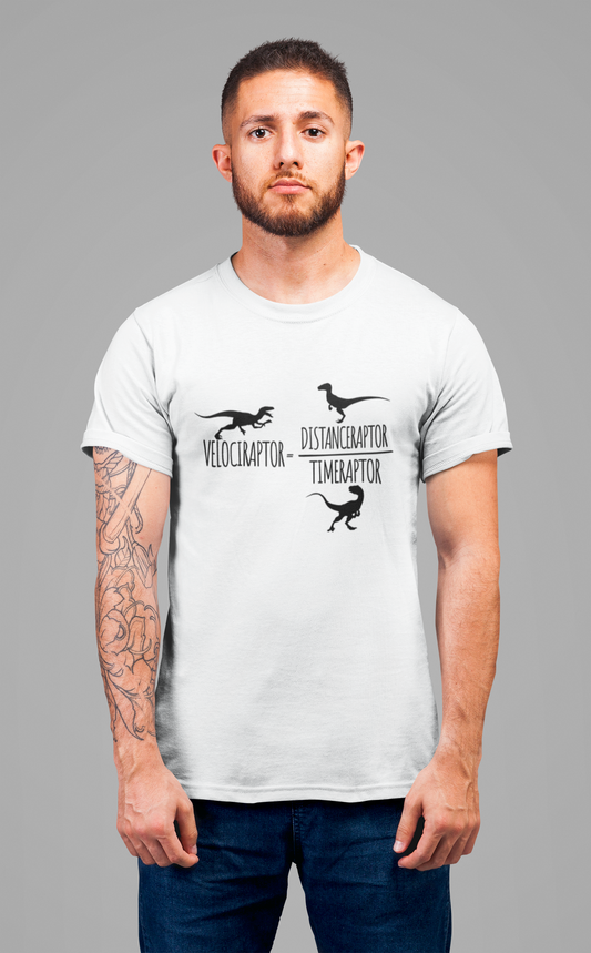 Dinosaur Math Joke Tee – Velociraptor = Distanceraptor / Timeraptor