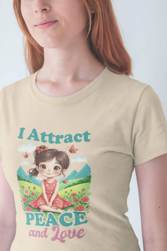 I Attract PEACE & Love – Little Girl in Nature with Butterflies Graphic T-Shirt