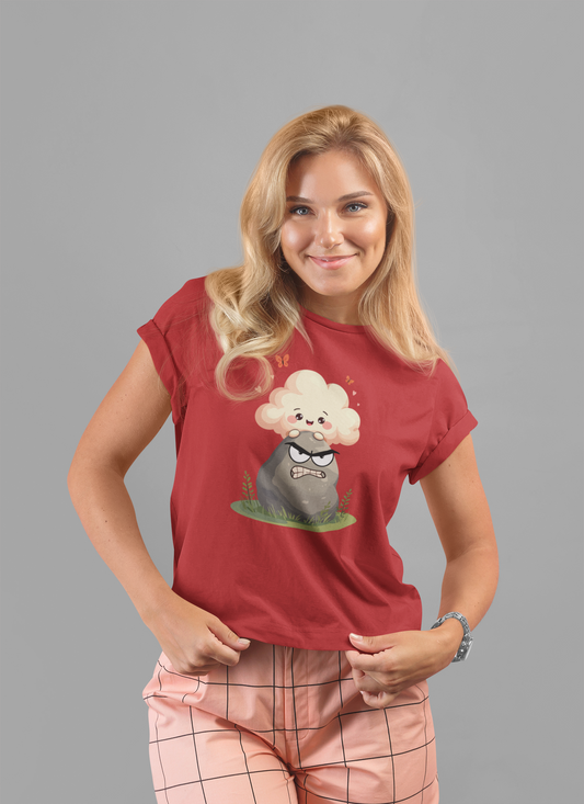 Soft but Solid - Smiling Cloud vs. Angry Rock – Playful Nature Face-Off Graphic T-Shirt