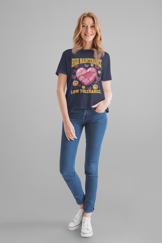 High Maintenance, Low Tolerance | Cracked Heart & Smiles Butterfly Graphic T-Shirt