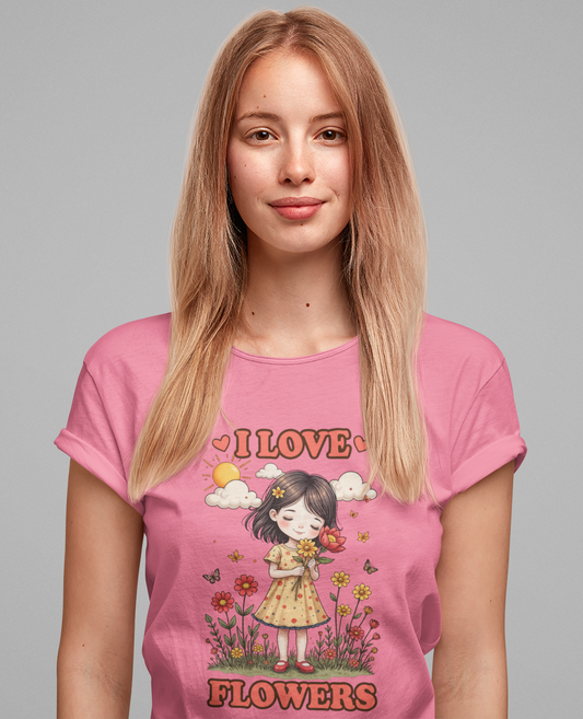 I Love Flowers T-Shirt – Cute Girl and Floral Garden Graphic Tee