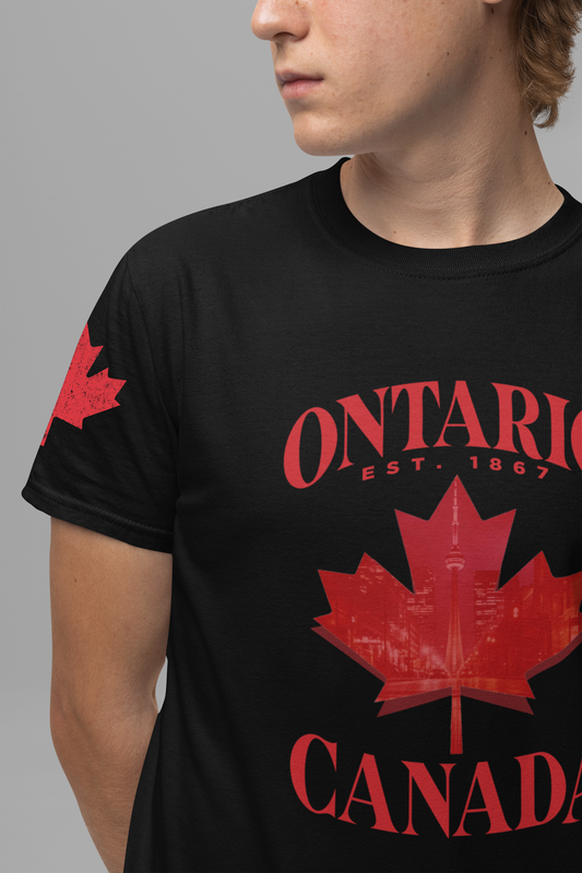 Made In Canada Iconic Symbols - Red & Black outline Print T-Shirt