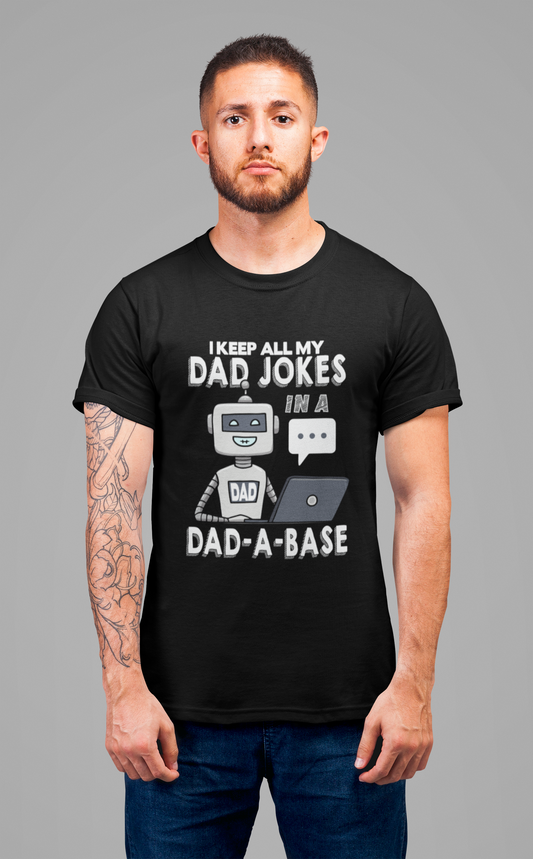 I Keep All My Dad Jokes in a DAD-A-Base Tshirt – Funny Robot with Laptop Graphic