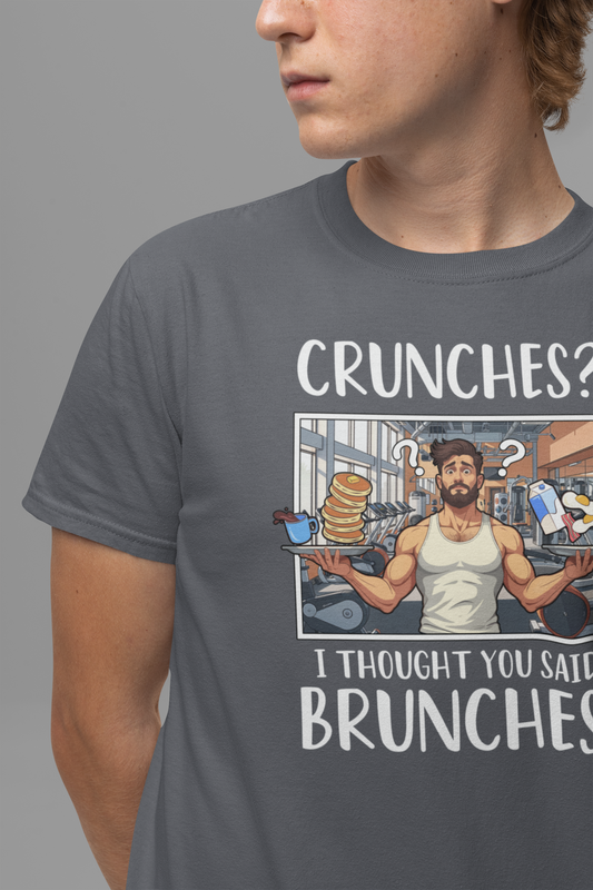 Crunches? I Thought You Said Brunches Funny Lifestyle Tee for Foodies, Gym Skippers, and Brunch Squad Members With Sass