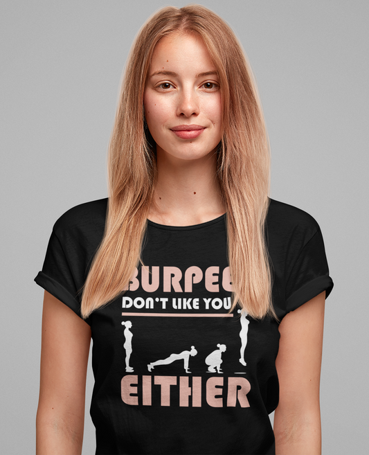 Burpees Don’t Like You Either Funny Workout Tee for Gym Haters Who Keep Showing Up Anyway With Humor and Sass on Every Rep