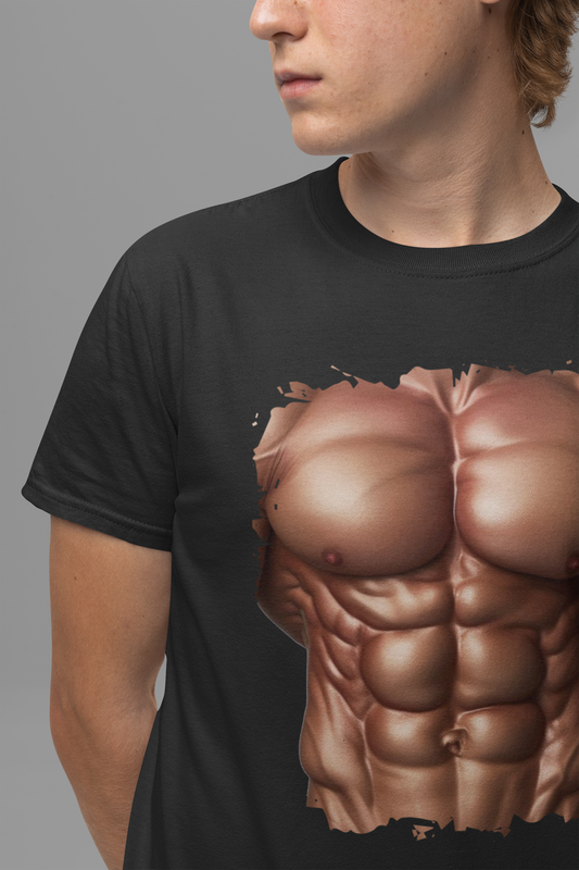 Chest Six Pack Abs Shirt, Muscles Bodybuilder Tee, Printed Gym T Shirt, Fitness Buff Costume Apparel, Fake Abs Funny Graphic Top