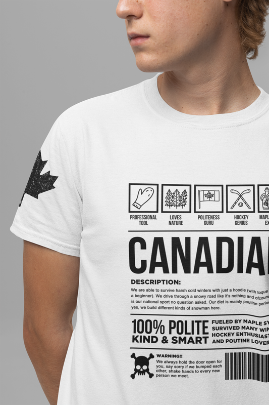 Canadian Traits Nutrition Facts - White Print T-Shirt