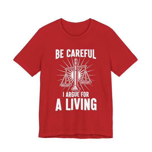 Be Careful I Argue For a Living T-Shirt – Lawyer Balance Scale and Flashlight Graphic Tee