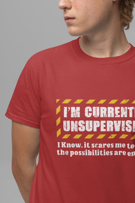 Currently Unsupervised T-Shirt – Funny Caution Alert Humorous Graphic Tee