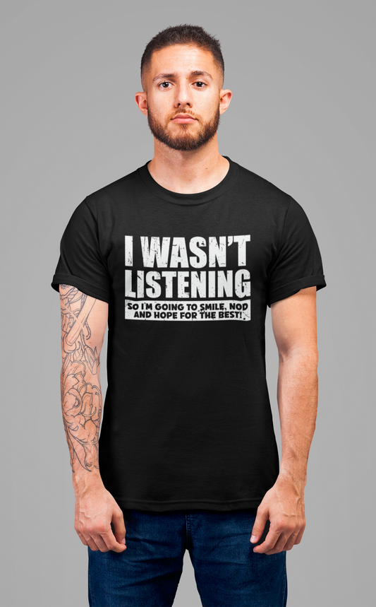 I Wasn’t Listening T-Shirt – Funny Sarcastic Smile and Nod Quote Tee