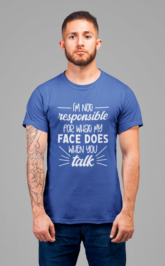 Funny Face Reaction T-Shirt – “I’m Not Responsible for What My Face Does When You Talk” Statement Tee