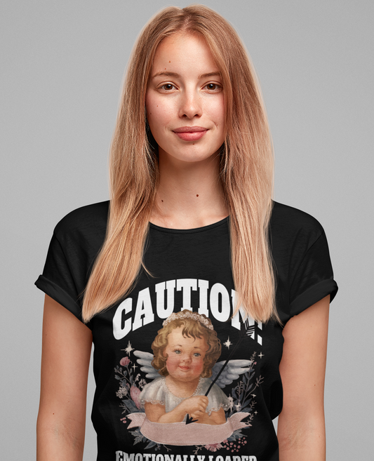 Caution: Emotionally Loaded | Little Girl Angel with Arrow Graphic T-Shirt