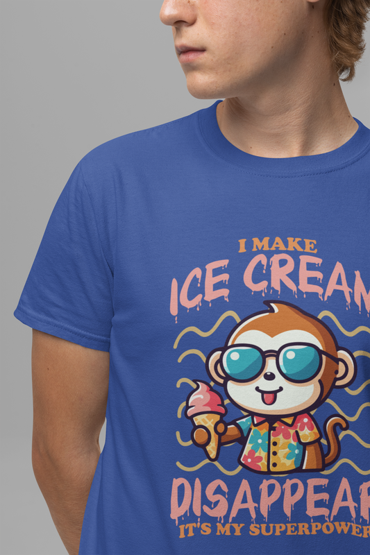 I Make Ice Cream Disappear T-Shirt – Cool Monkey With Sunglasses And Ice Cream Cone Funny Graphic Tee