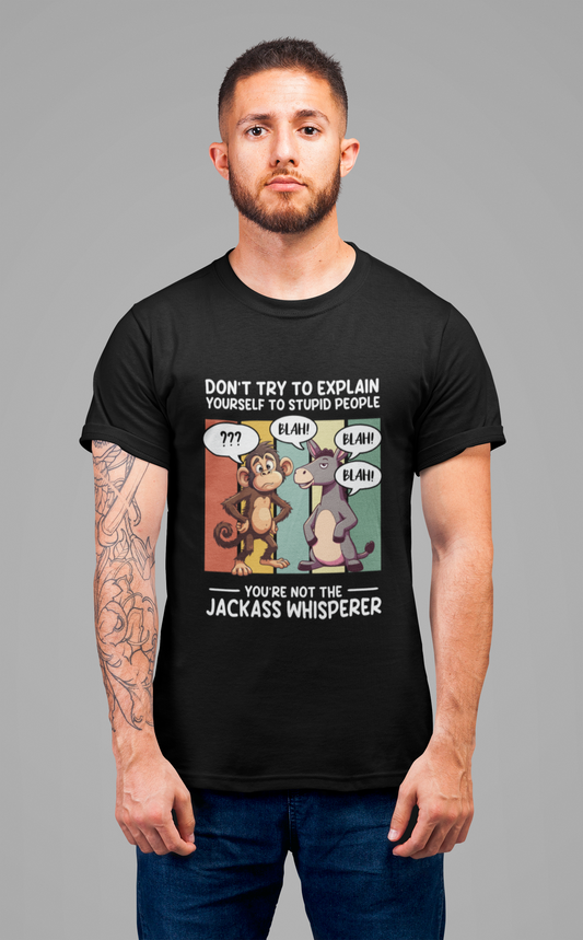 Don’t Try to Explain Yourself to Stupid People Tshirt – Confused Monkey & Blabbering Donkey Humor