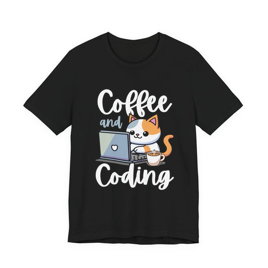 Coffee and Coding Cat Laptop Tshirt – Purrfect for Programmers