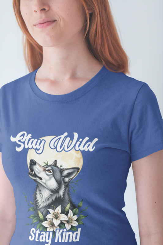 Stay Wild Stay Kind Wolf T-Shirt – Moon and Flower Nature Graphic