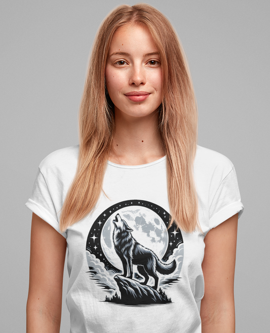 The Legendary White Wolf T-Shirt – Majestic Wolf Howling at Full Moon