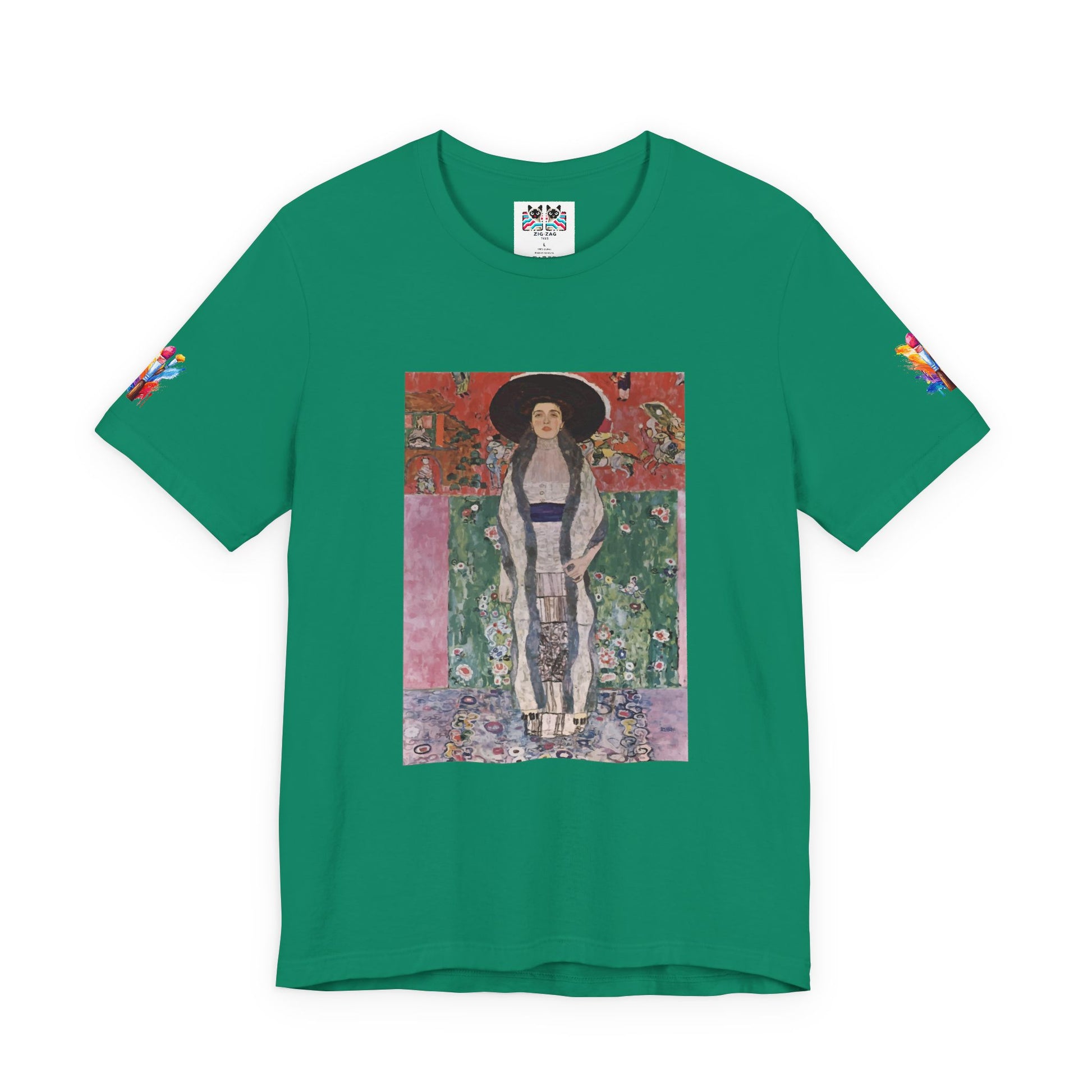 Experience the decorative splendor of the Art Nouveau movement with this breathtaking portrait t-shirt. This design features an elegant woman in an ornate, kimono-inspired dress adorned with intricate floral patterns and geometric designs. The composition showcases the Art Nouveau hallmarks of flowing lines, natural motifs, rich colors, and the influence of Japanese aesthetics that captivated European artists at the turn of the 20th century.