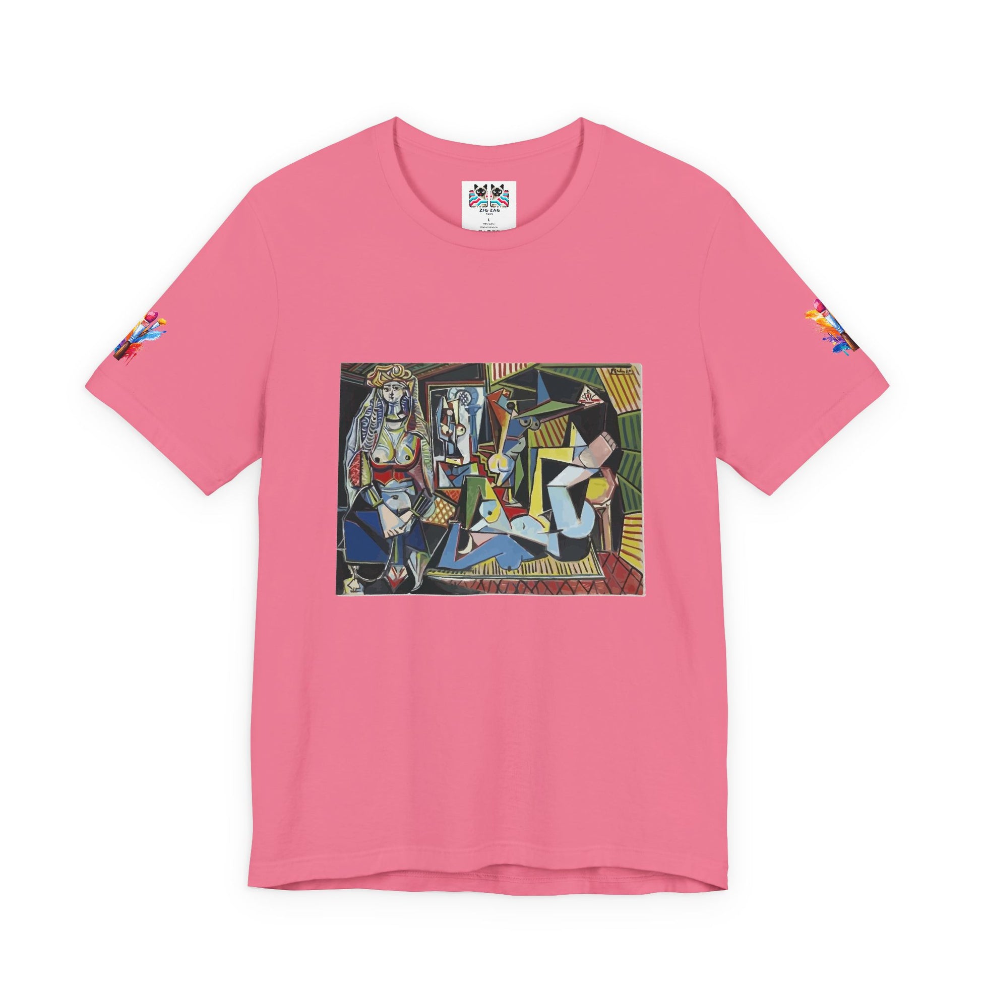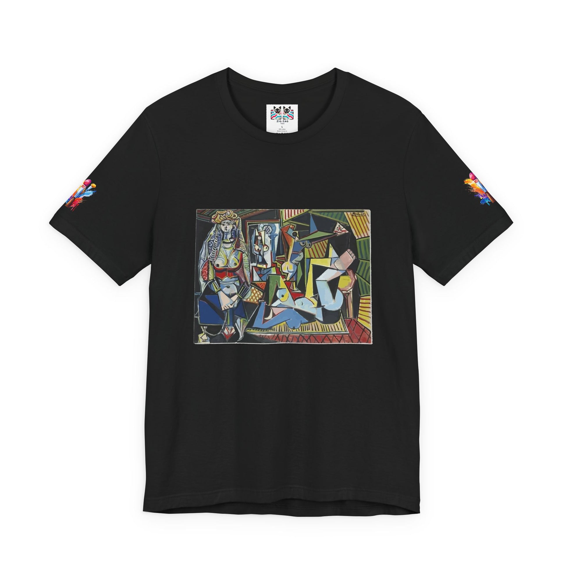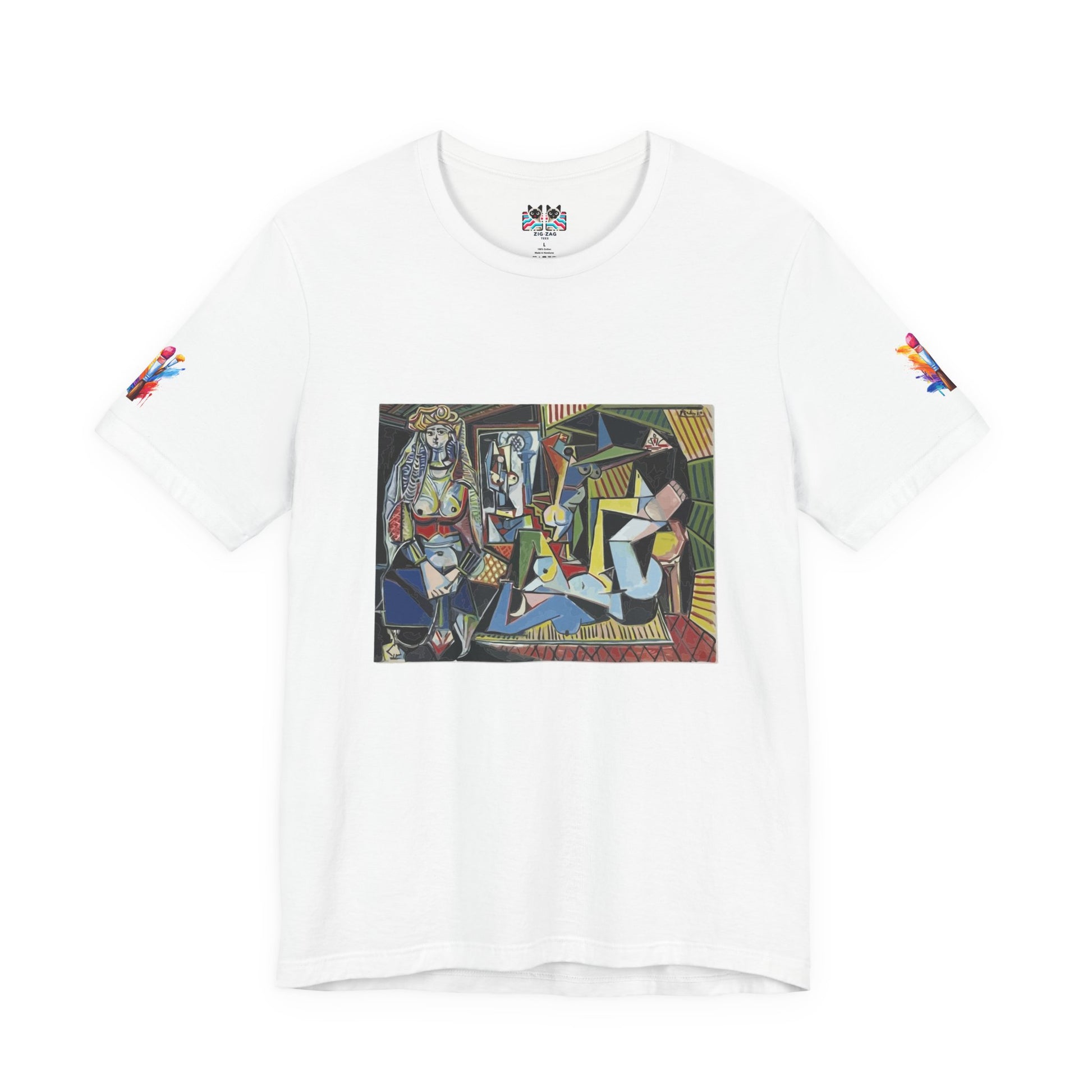 Celebrate one of the most revolutionary art movements of the 20th century with this stunning Cubist masterpiece t-shirt. This design features a dynamic composition of fragmented geometric figures rendered in bold colors and angular shapes that break from traditional perspective. The artwork showcases the Cubist technique of depicting subjects from multiple viewpoints simultaneously, creating a complex visual puzzle that challenges viewers to see form in new ways.