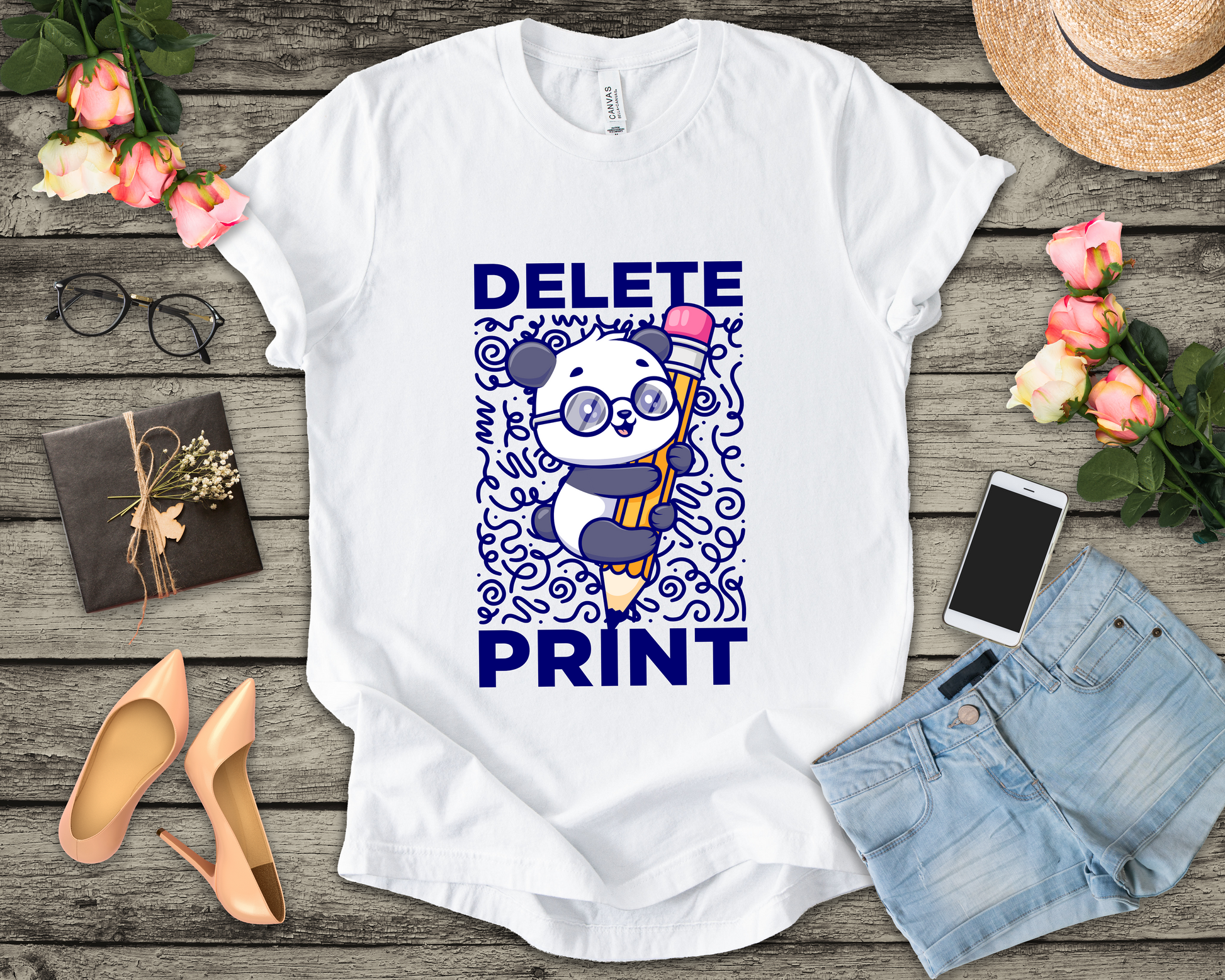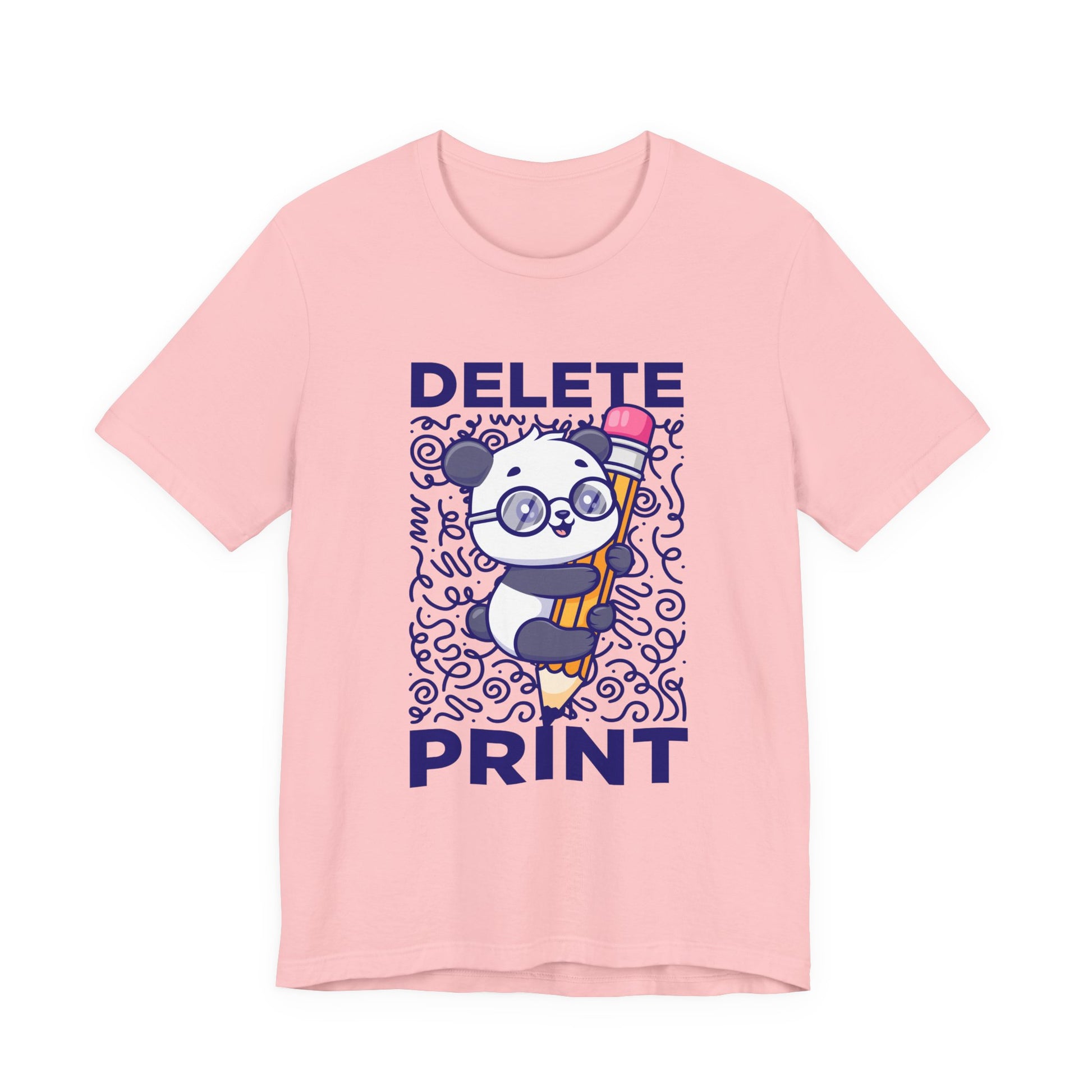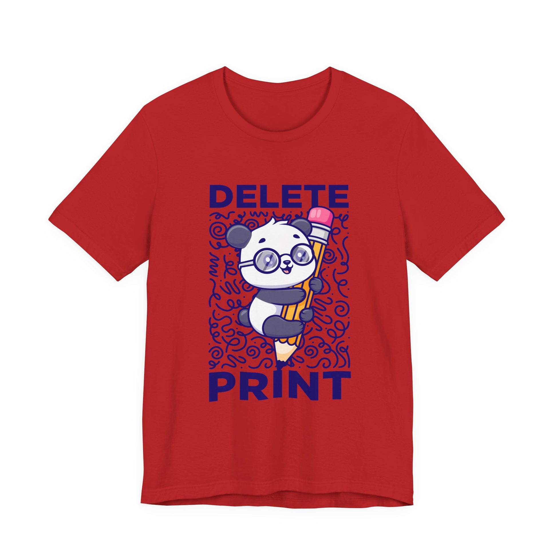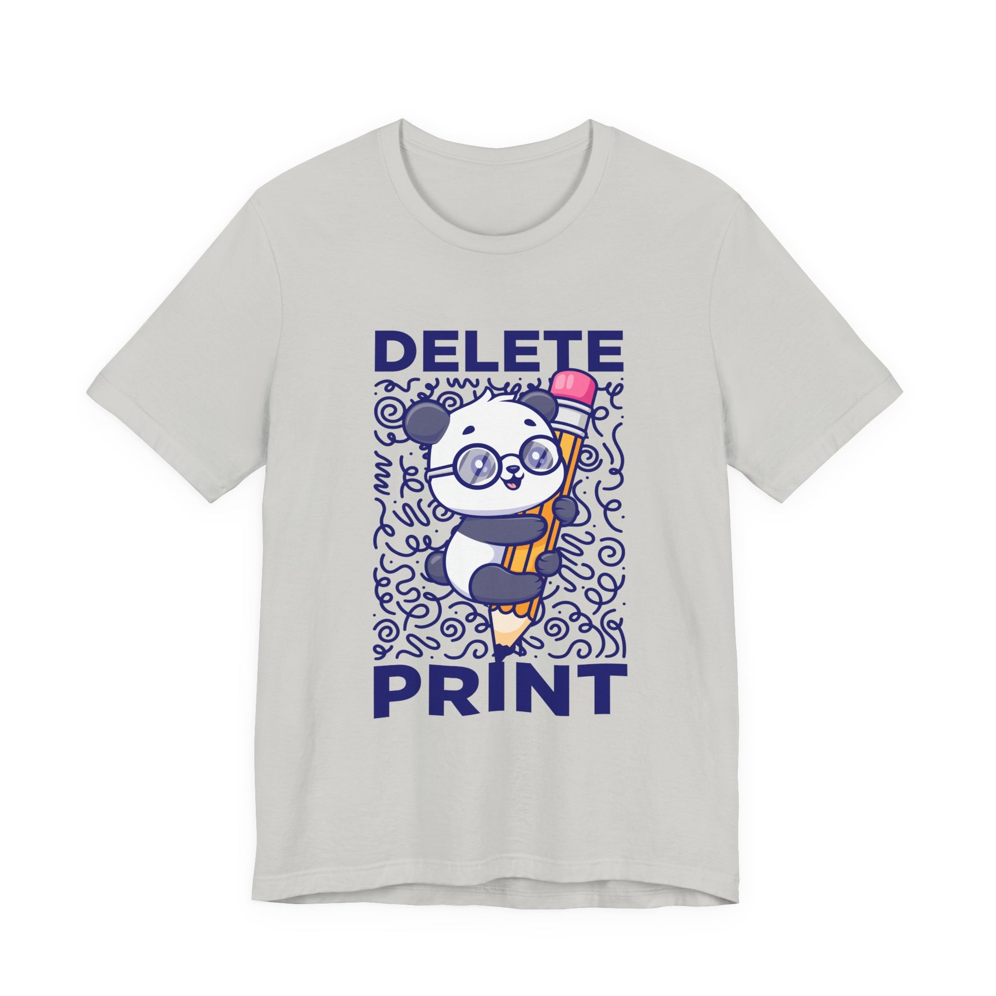 Show off your artistic side and love for dogs with this charming T-shirt! Featuring a happy puppy wearing eyeglasses, hugging an enormous pencil and ready to scribble, paired with the bold phrase “DELETE PRINT.” Perfect for artists, creatives, pet lovers, and anyone who enjoys playful, cute designs with a touch of humor. A great gift for illustrators, graphic designers, and dog enthusiasts alike.