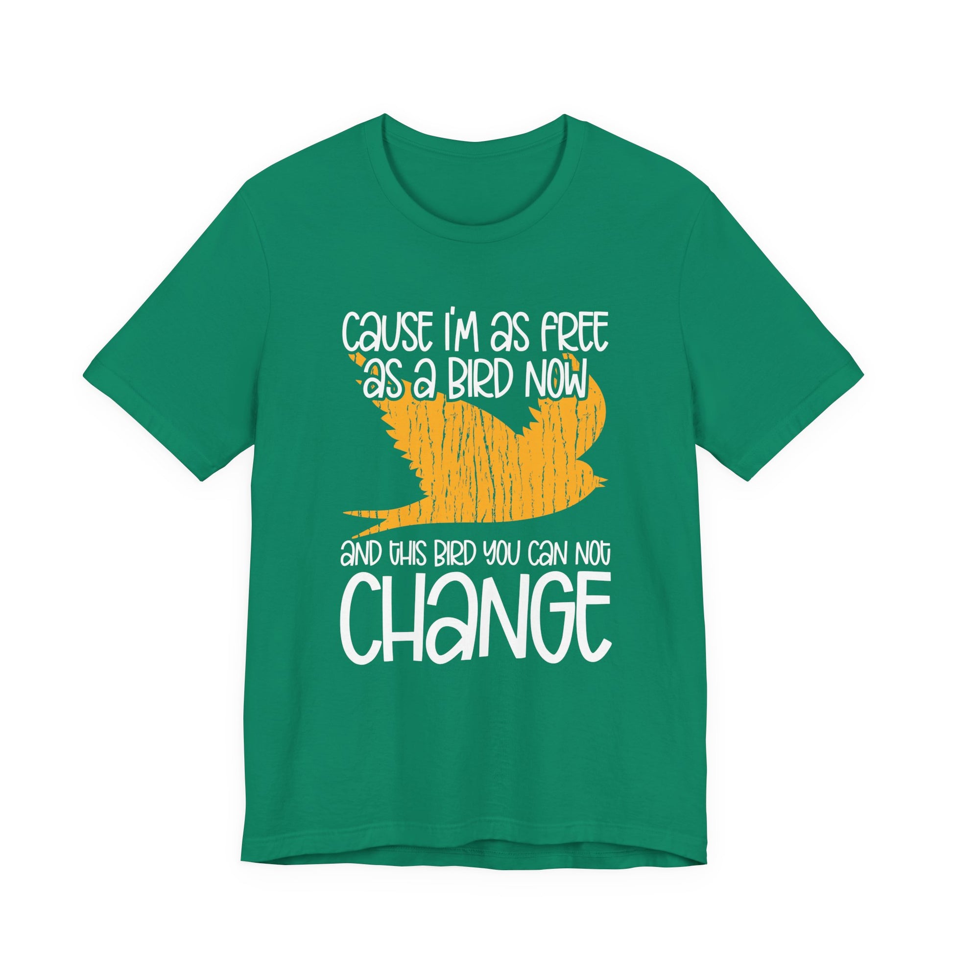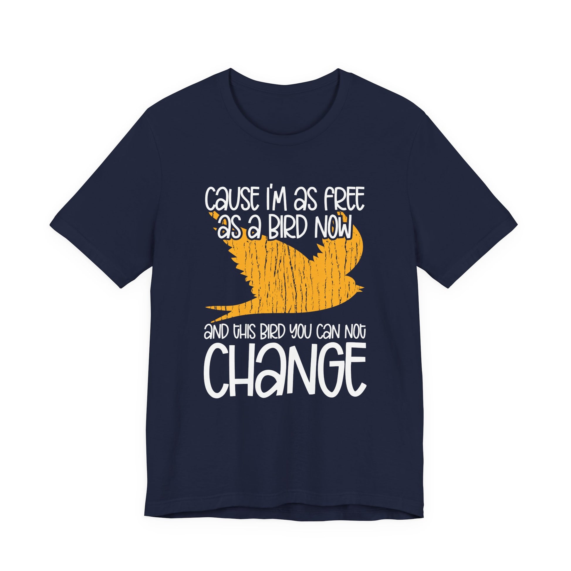 Embrace your free spirit with this inspiring “Free as a Bird” tee! Featuring a bold abstract bird in flight with the text “’Cause I’m as free as a bird now and this bird you can not change,” it’s a perfect shirt for music lovers, dreamers, and anyone who values independence. A great everyday statement piece or thoughtful gift.