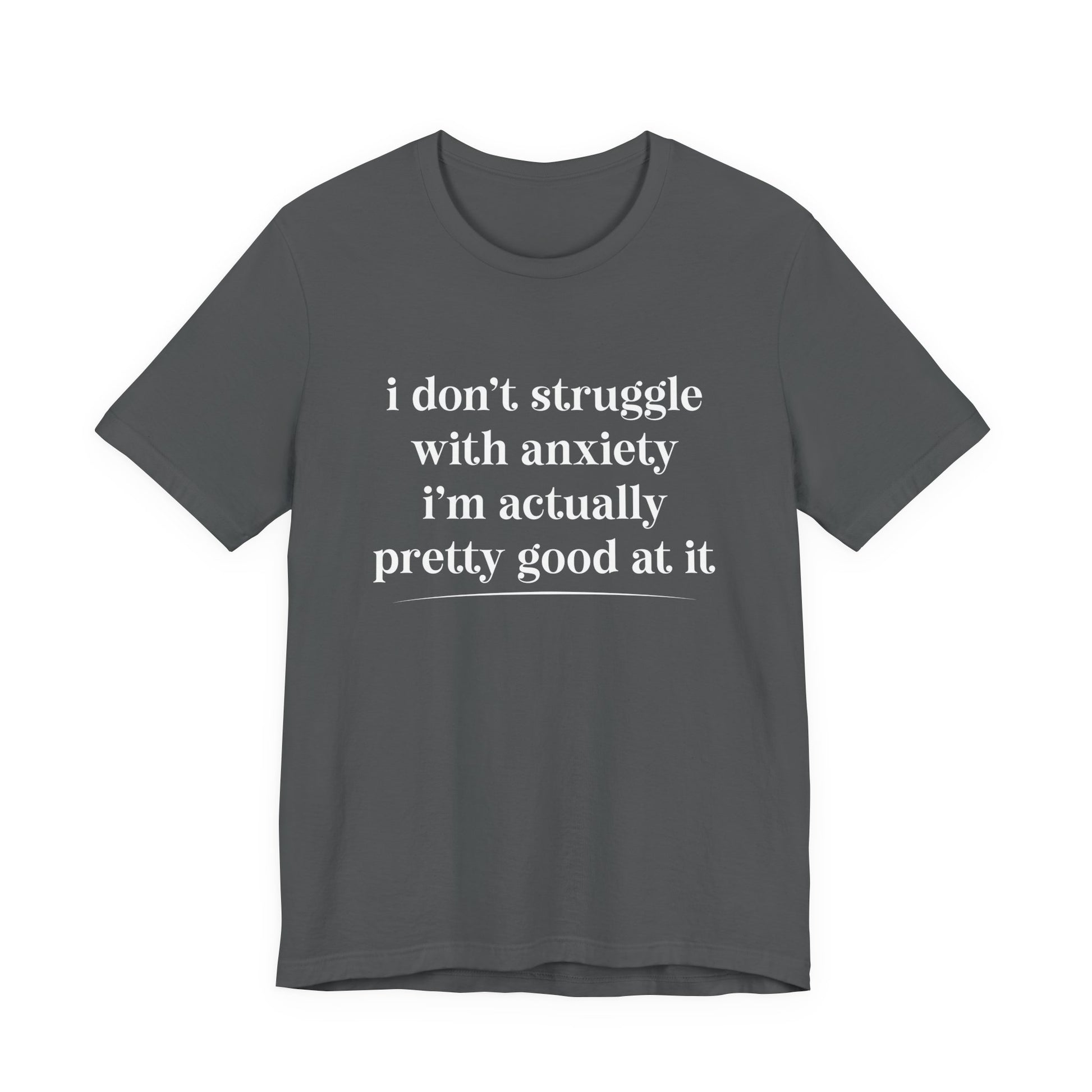 Funny Anxiety T-Shirt – “I Don’t Struggle with Anxiety, I’m Actually Pretty Good at It” Tee