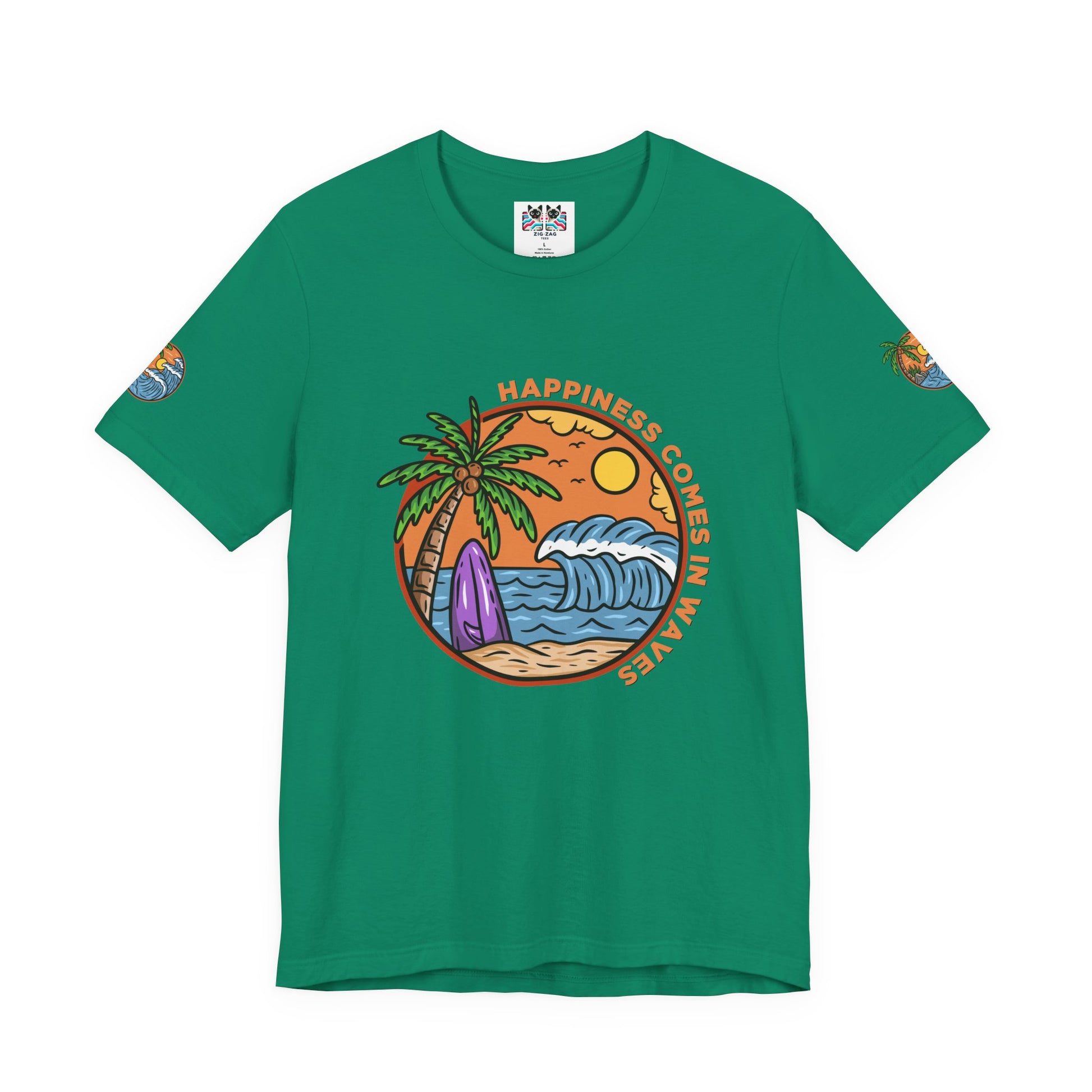 Happiness Comes in Waves T-Shirt – Beach Surf Palm Tree Ocean Graphic Tee