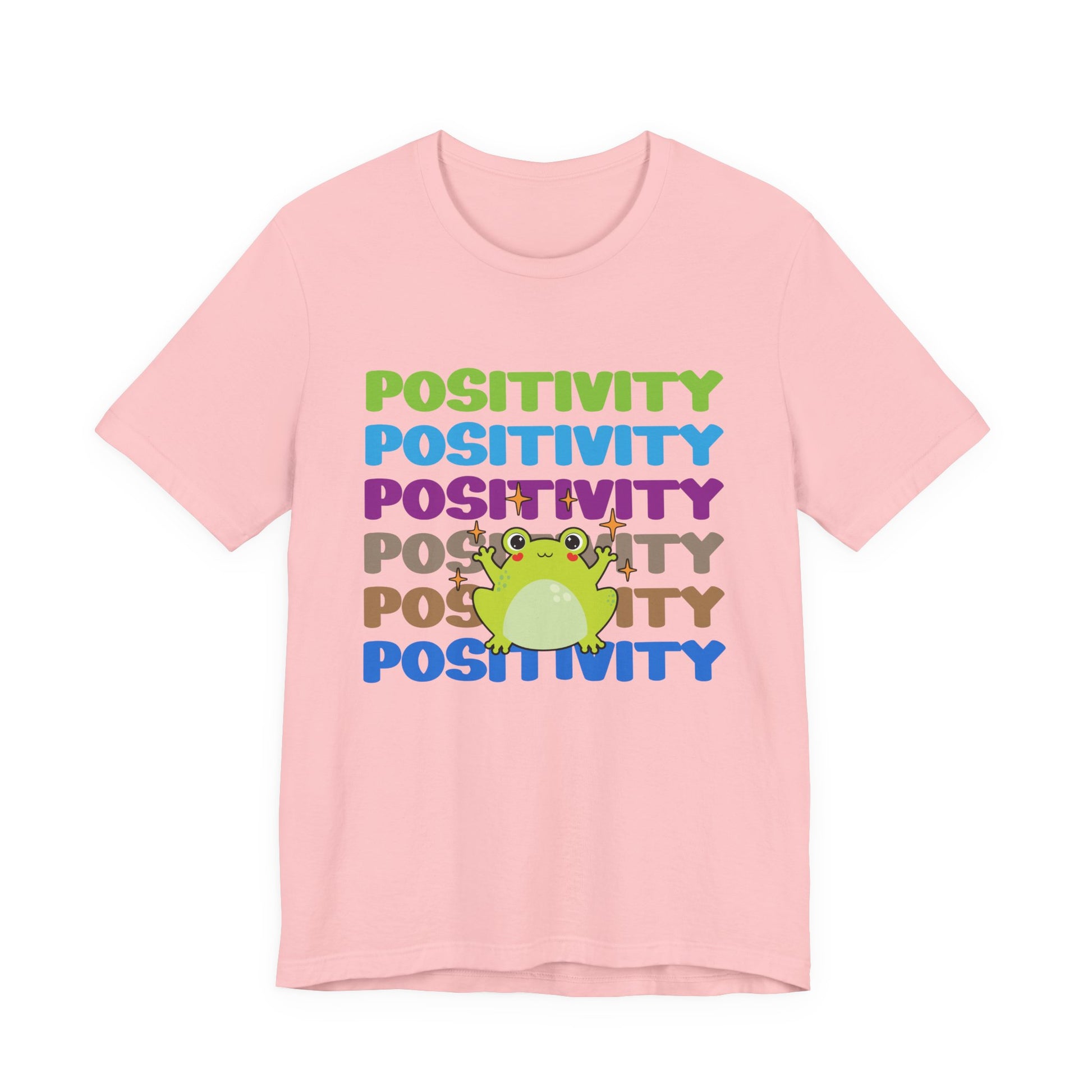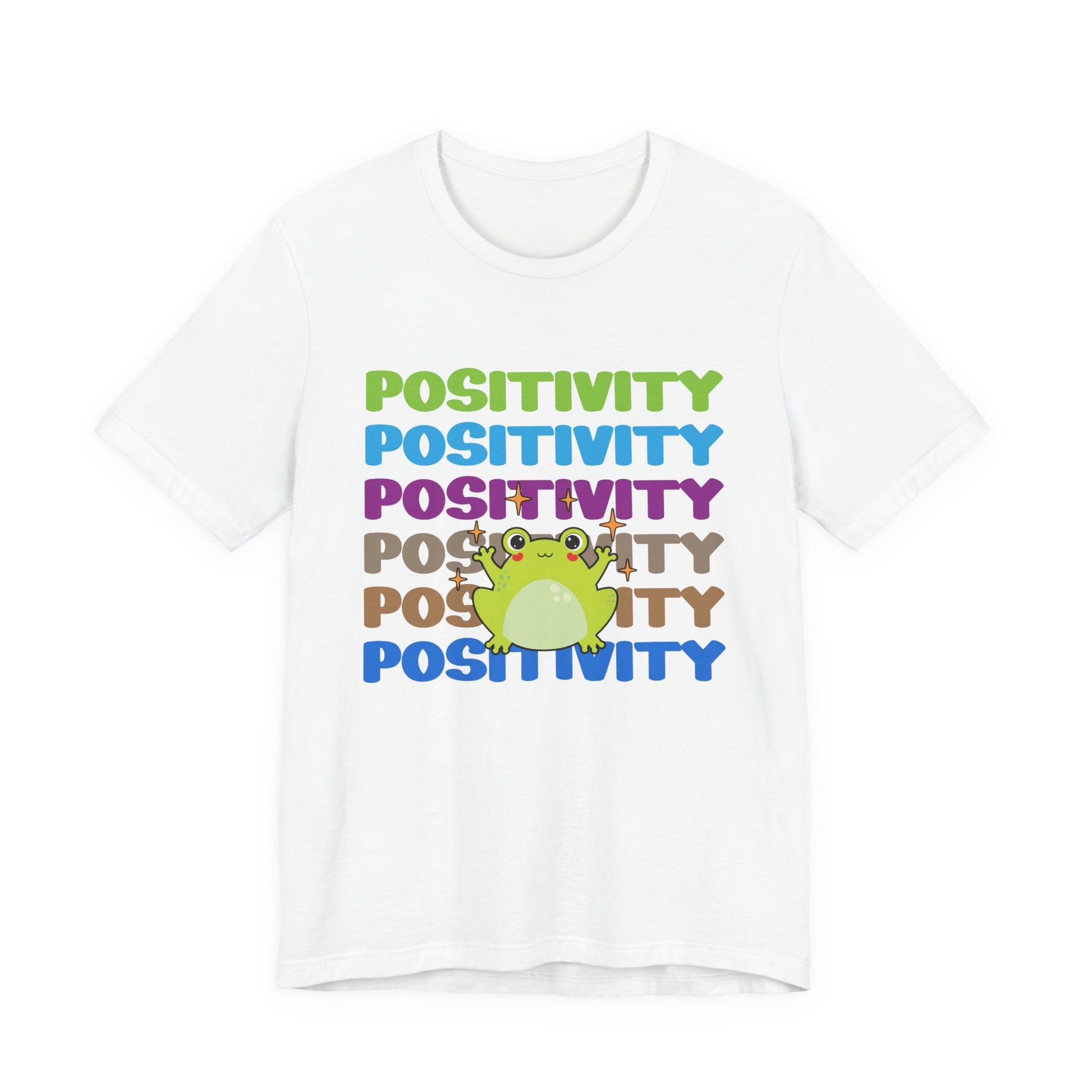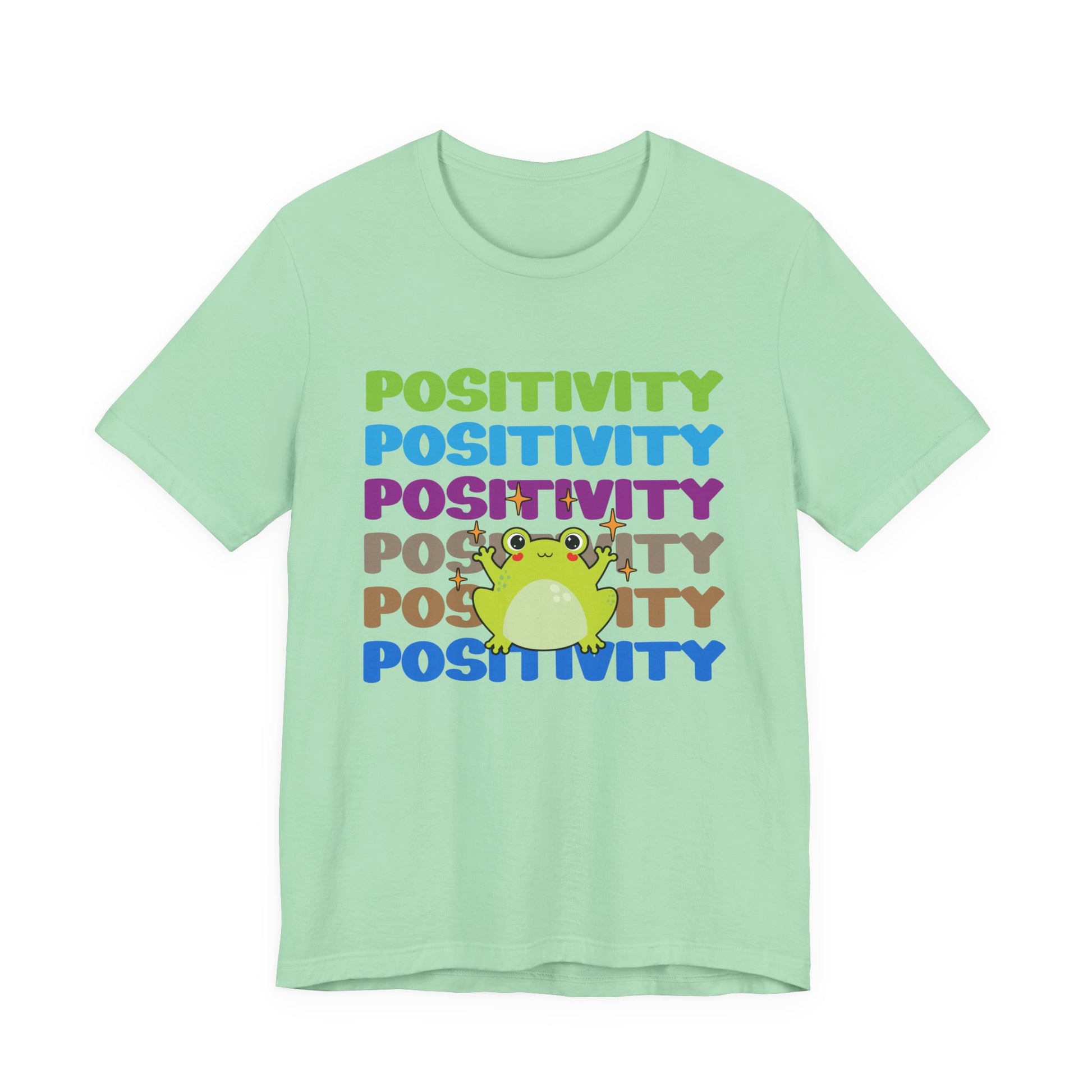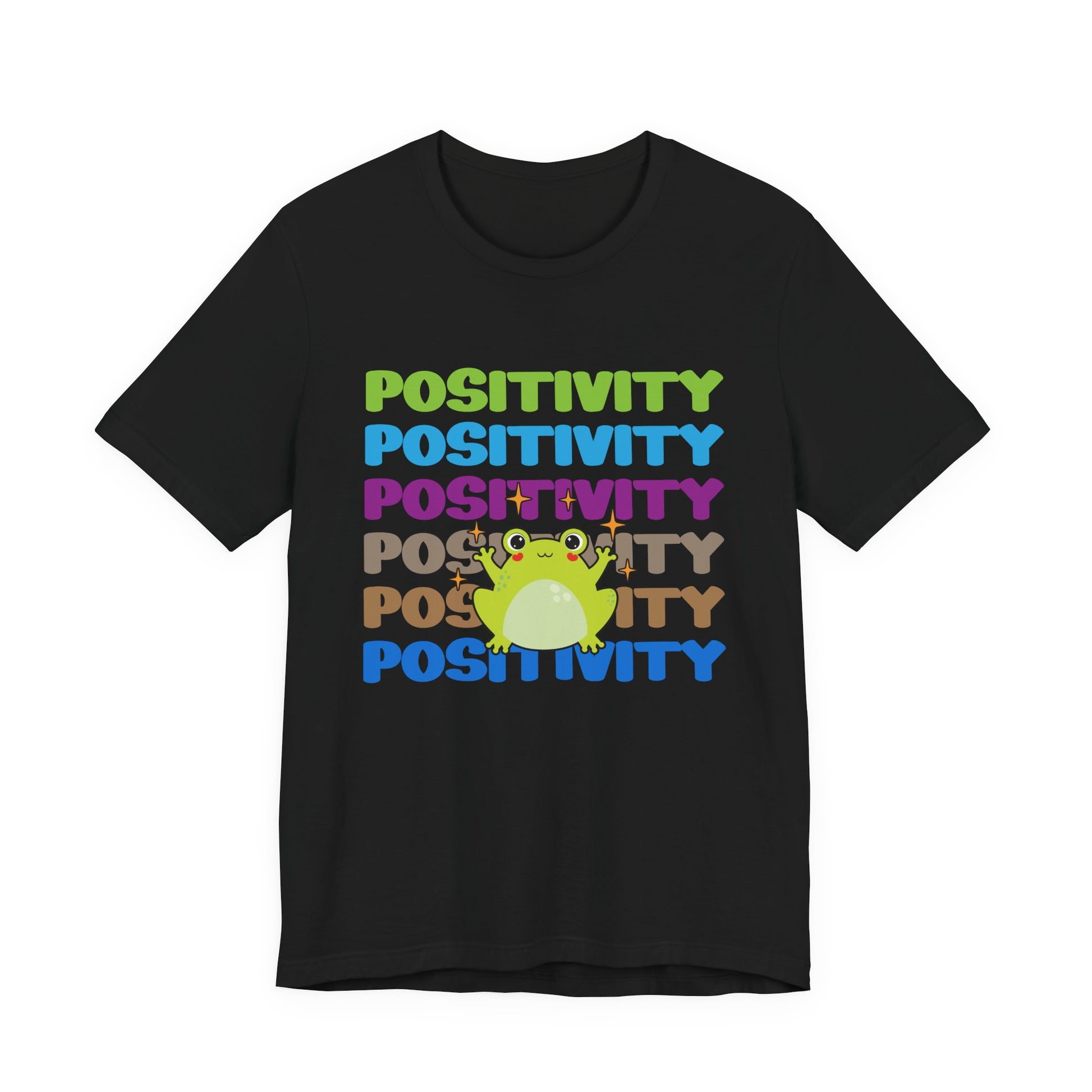 Bring good vibes wherever you go with this uplifting frog-themed tee! Featuring a big, happy green frog sitting proudly on top of layered “Positivity” text in the background, this shirt is perfect for spreading smiles and encouragement. A fun gift for frog lovers, positivity seekers, or anyone who enjoys playful yet motivational style.