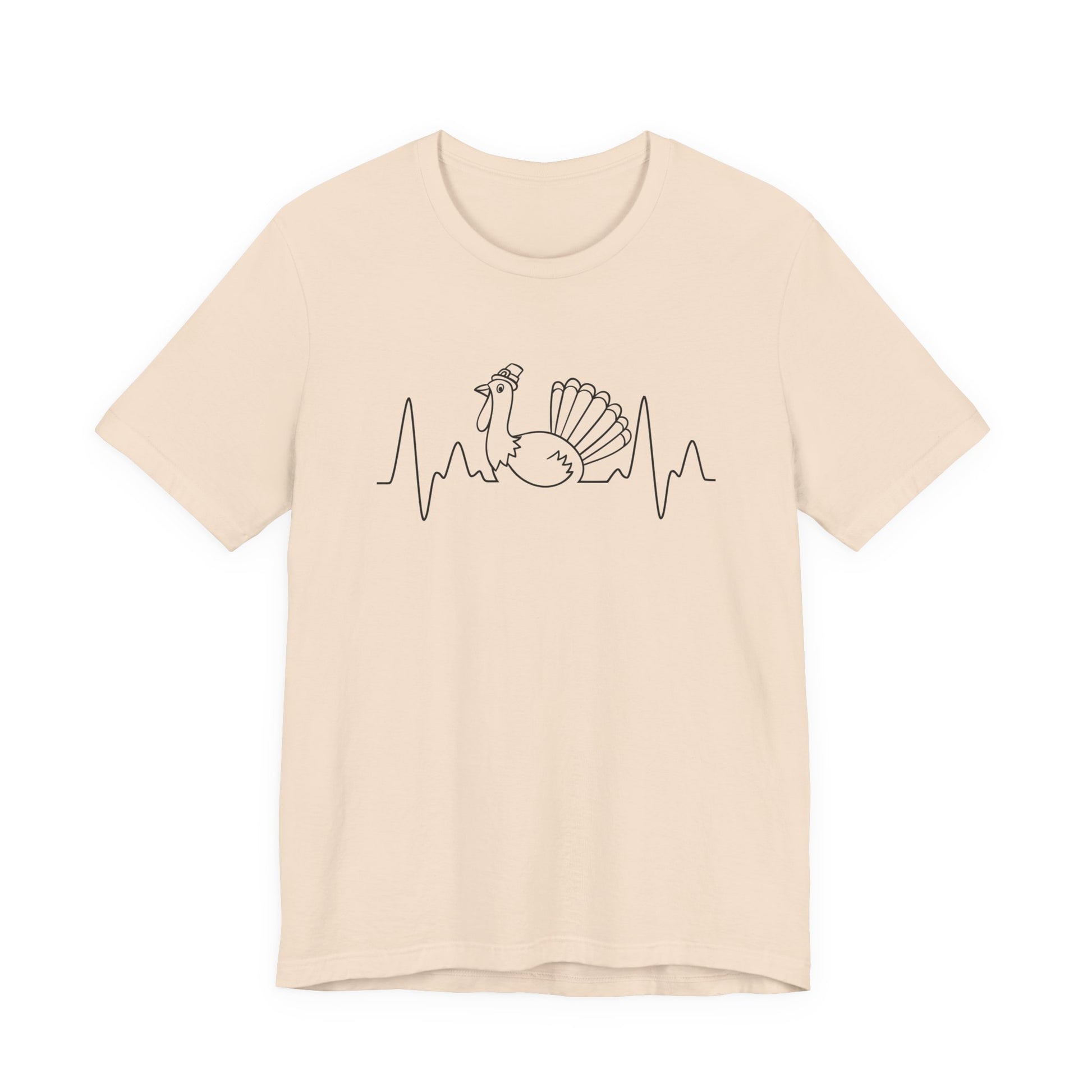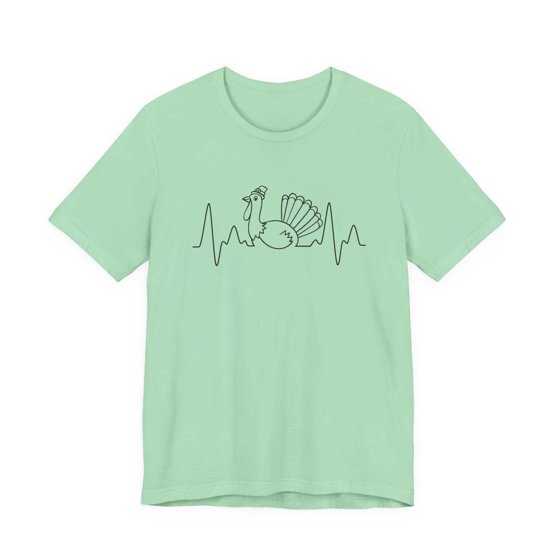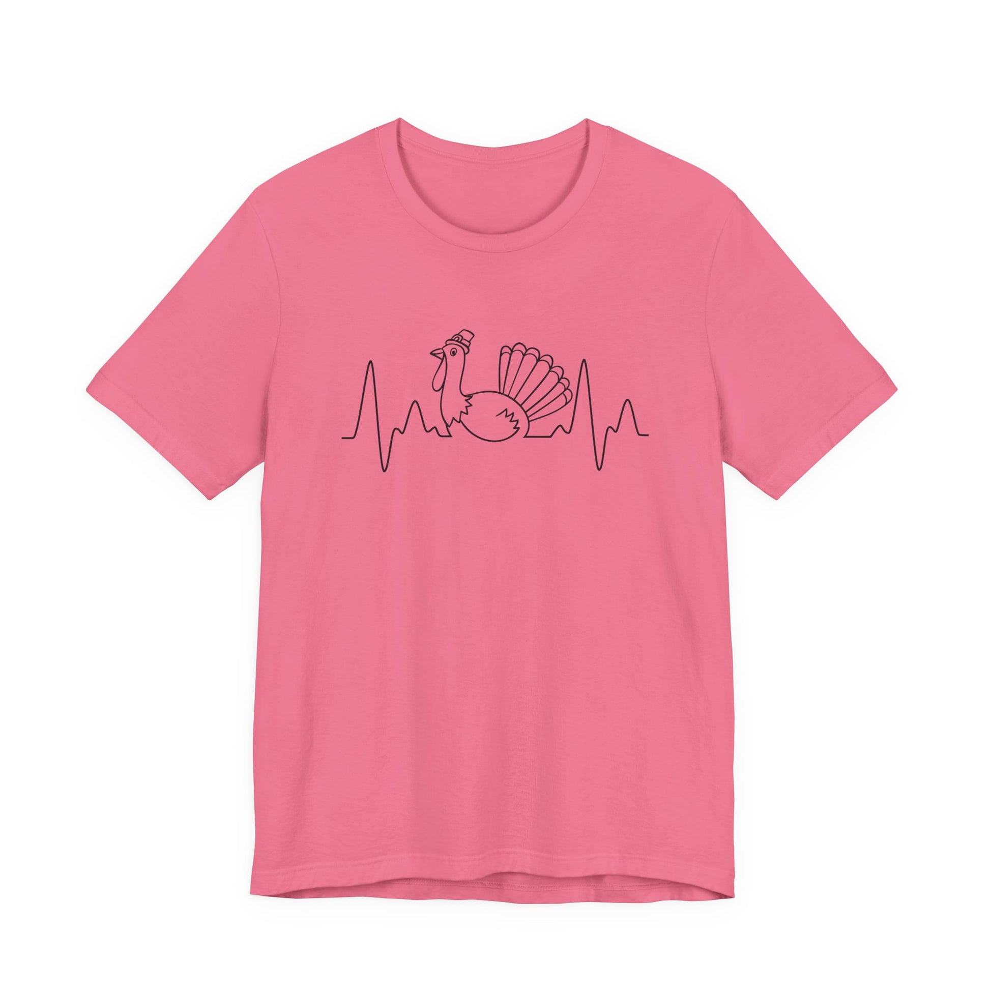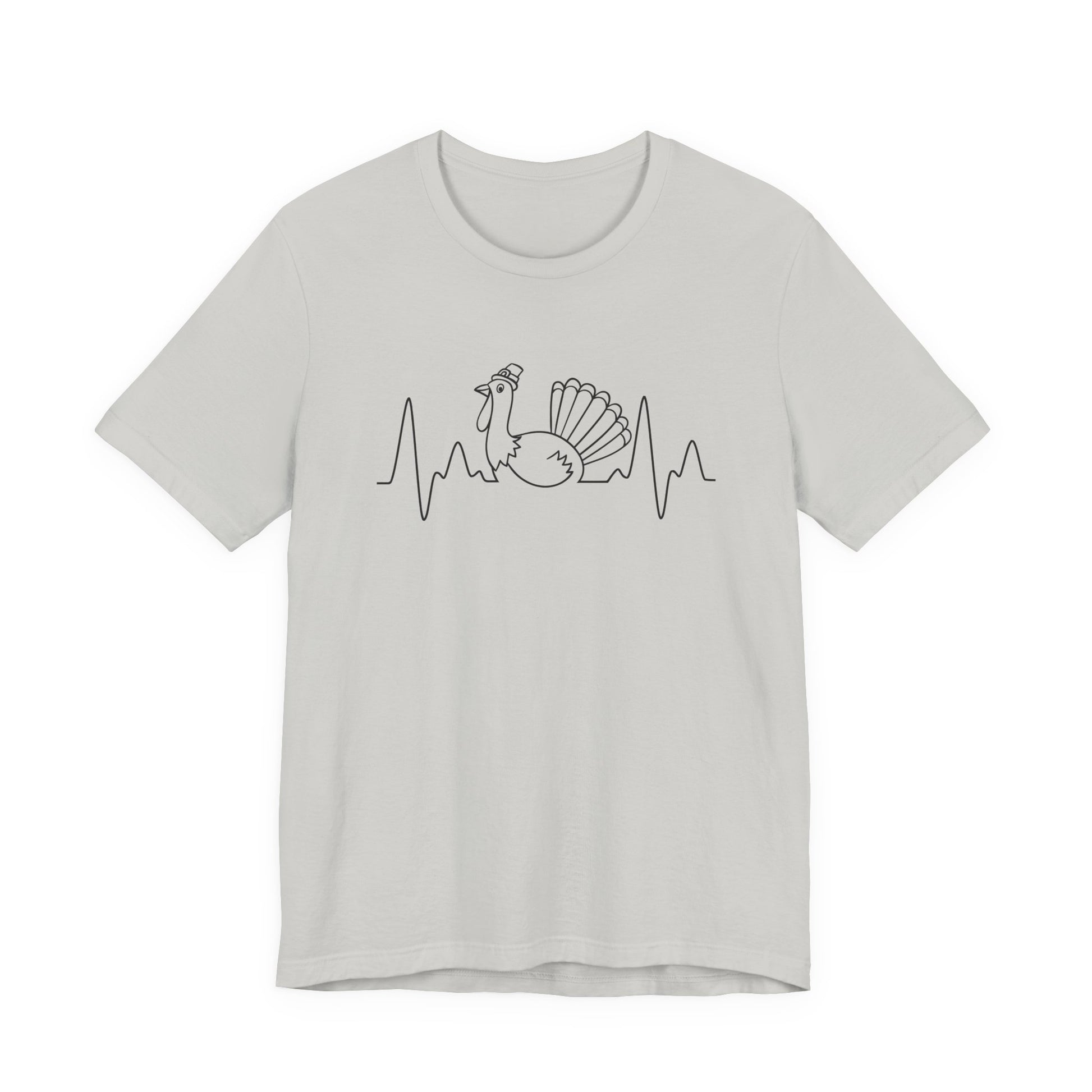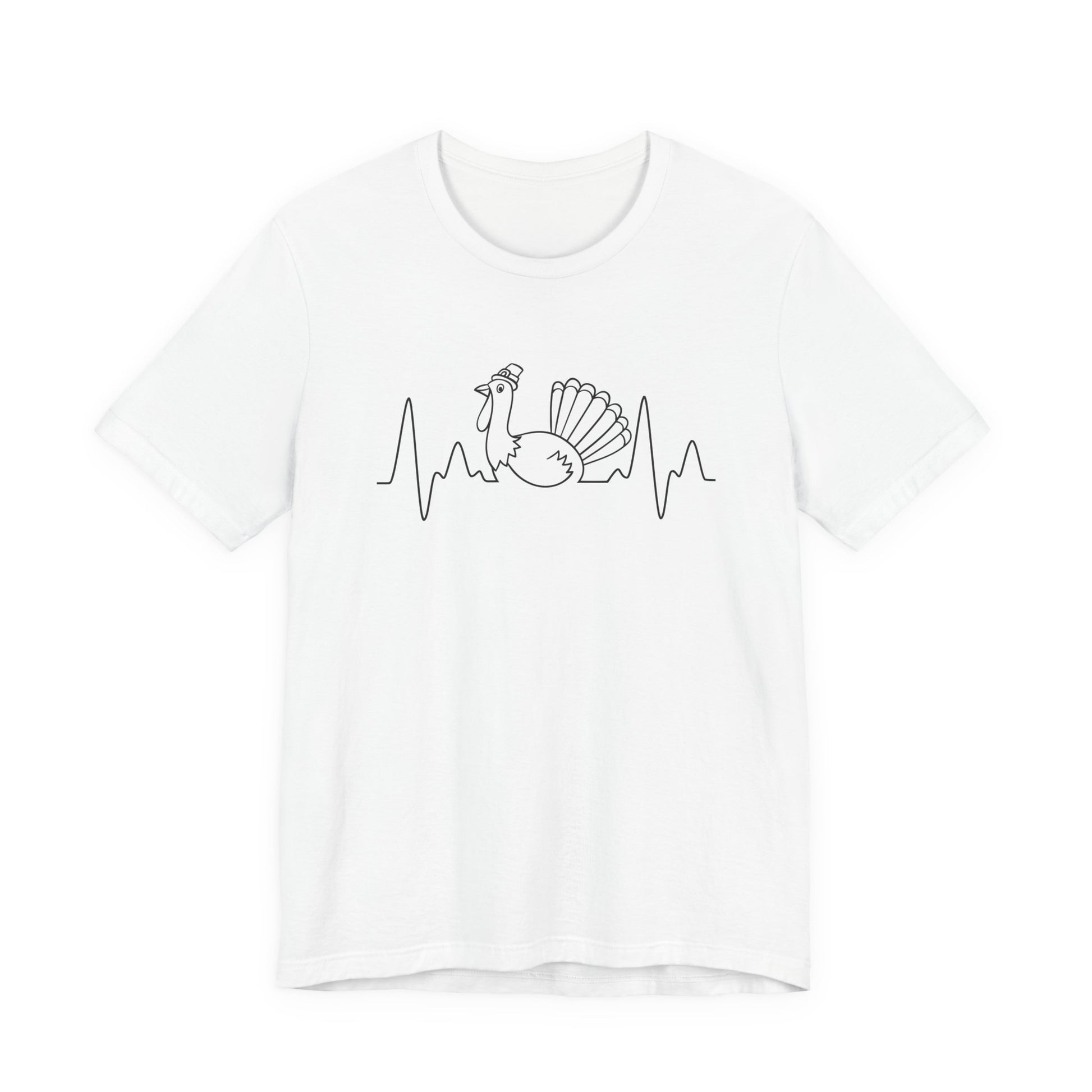 Show your love for the season or your favorite bird with this unique heartbeat turkey t-shirt. Featuring a creative design of a turkey outlined with a continuous lifeline from one end to the other, it’s perfect for Thanksgiving celebrations, bird lovers, and anyone who enjoys eye-catching art. Made from soft, breathable fabric, this shirt offers comfort with a festive twist, making it ideal for casual wear, holiday gatherings, or as a fun gift.