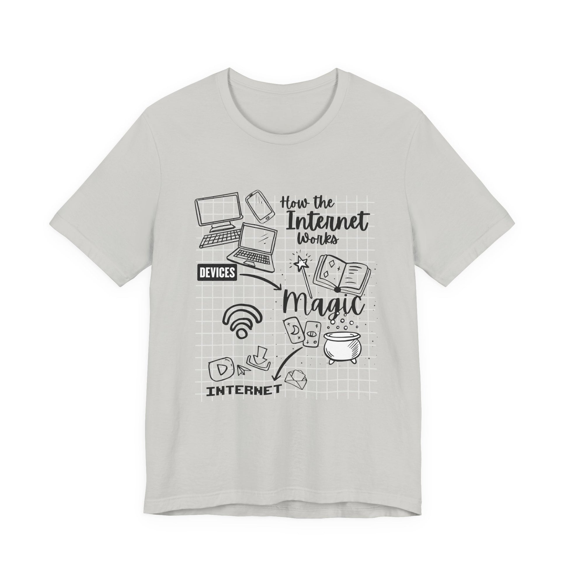 How the Internet Works Tshirt – Devices to Magic to Internet Flow Diagram
