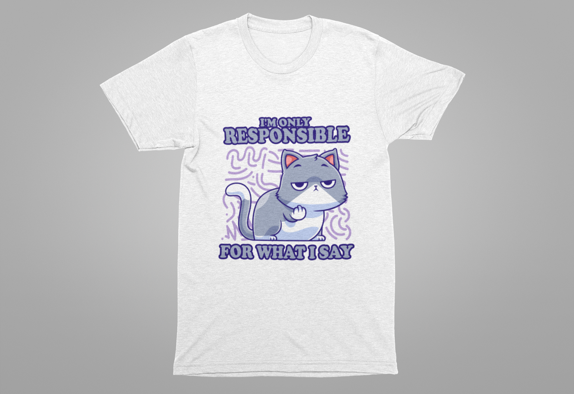 Speak your mind with style in this witty T-shirt! Featuring a cat looking directly at you, holding its paw up as if saying “wait,” this design is paired with the confident phrase “I’m only Responsible for what I say.” Perfect for cat lovers and anyone who stands by their words, this t-shirt combines feline attitude with unapologetic honesty. Great for everyday wear, self-expression, or as a unique gift for the bold.