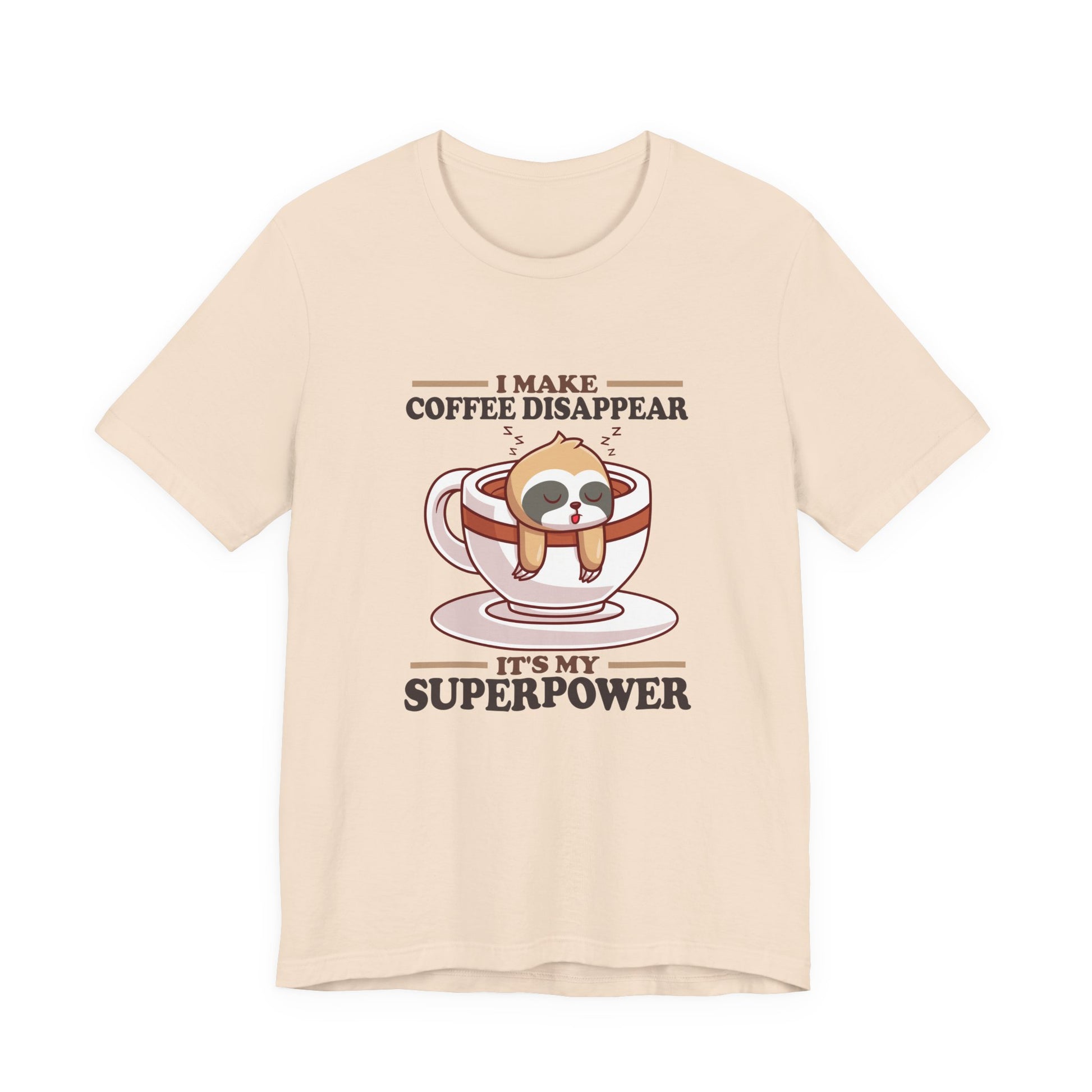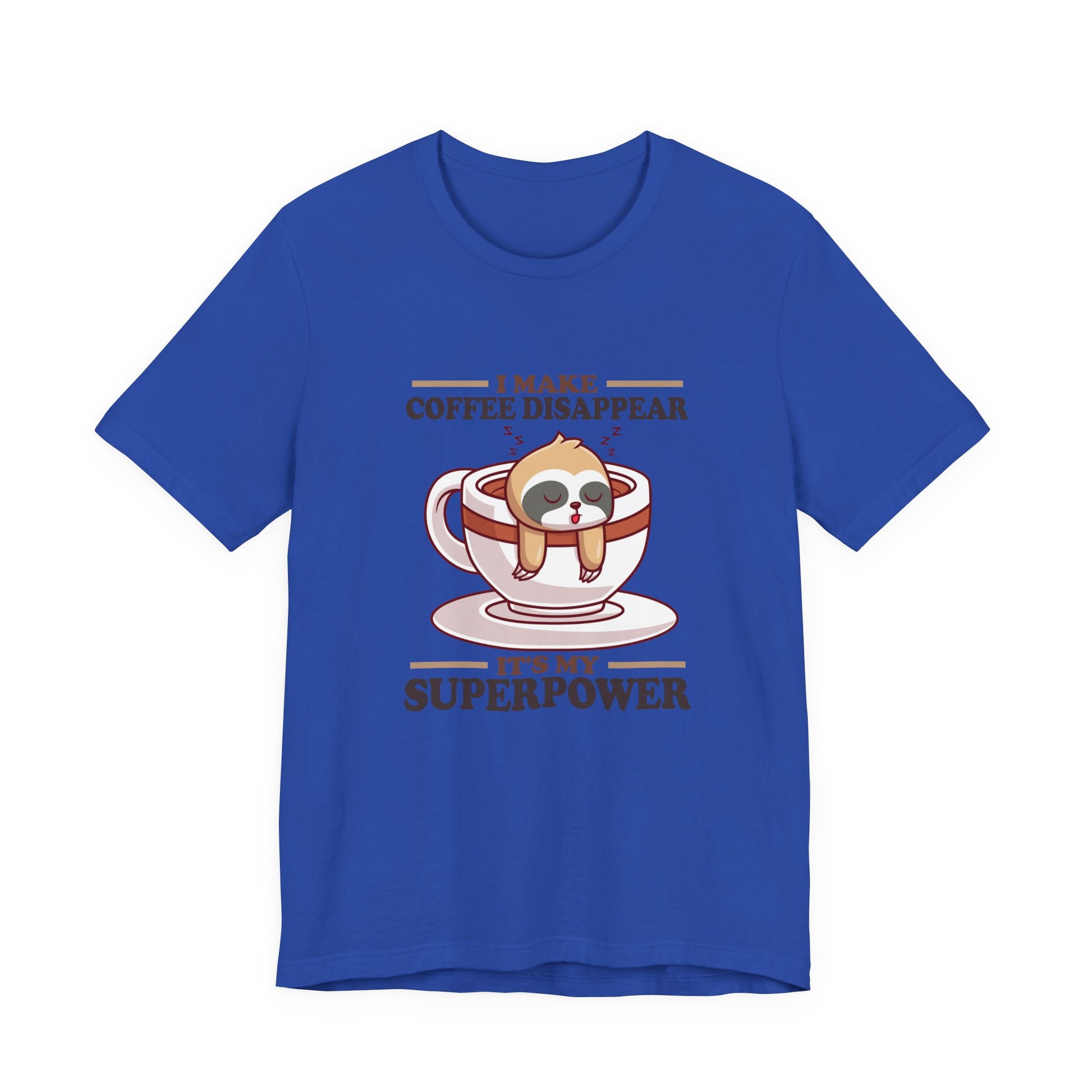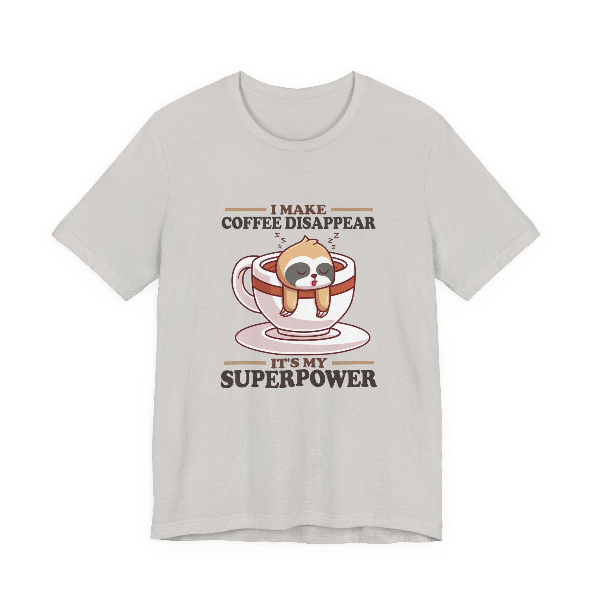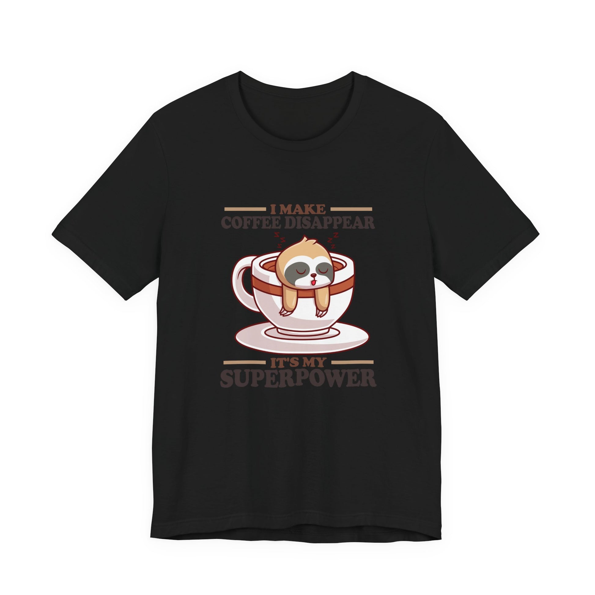 Celebrate the slow and steady love for coffee with this charming T-shirt! Featuring a sleepy sloth hanging from a steaming coffee cup, this design pairs adorable animal charm with the playful phrase, “I make Coffee Disappear, It's my Super Power.” Perfect for coffee lovers, sloth fans, and anyone who needs their daily caffeine kick. Makes a great casual shirt or gift for those who embrace the relaxed side of life.