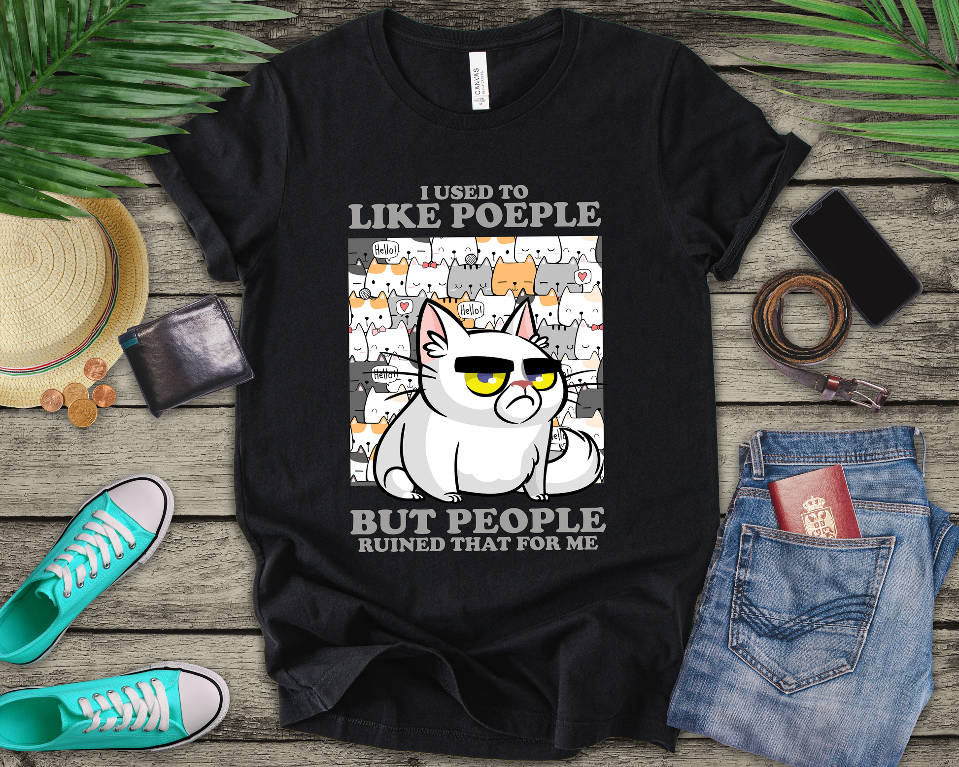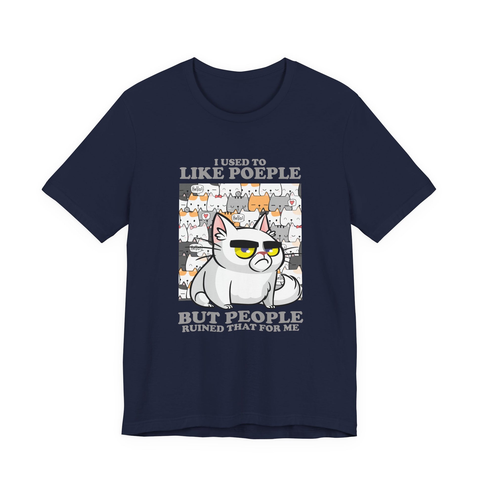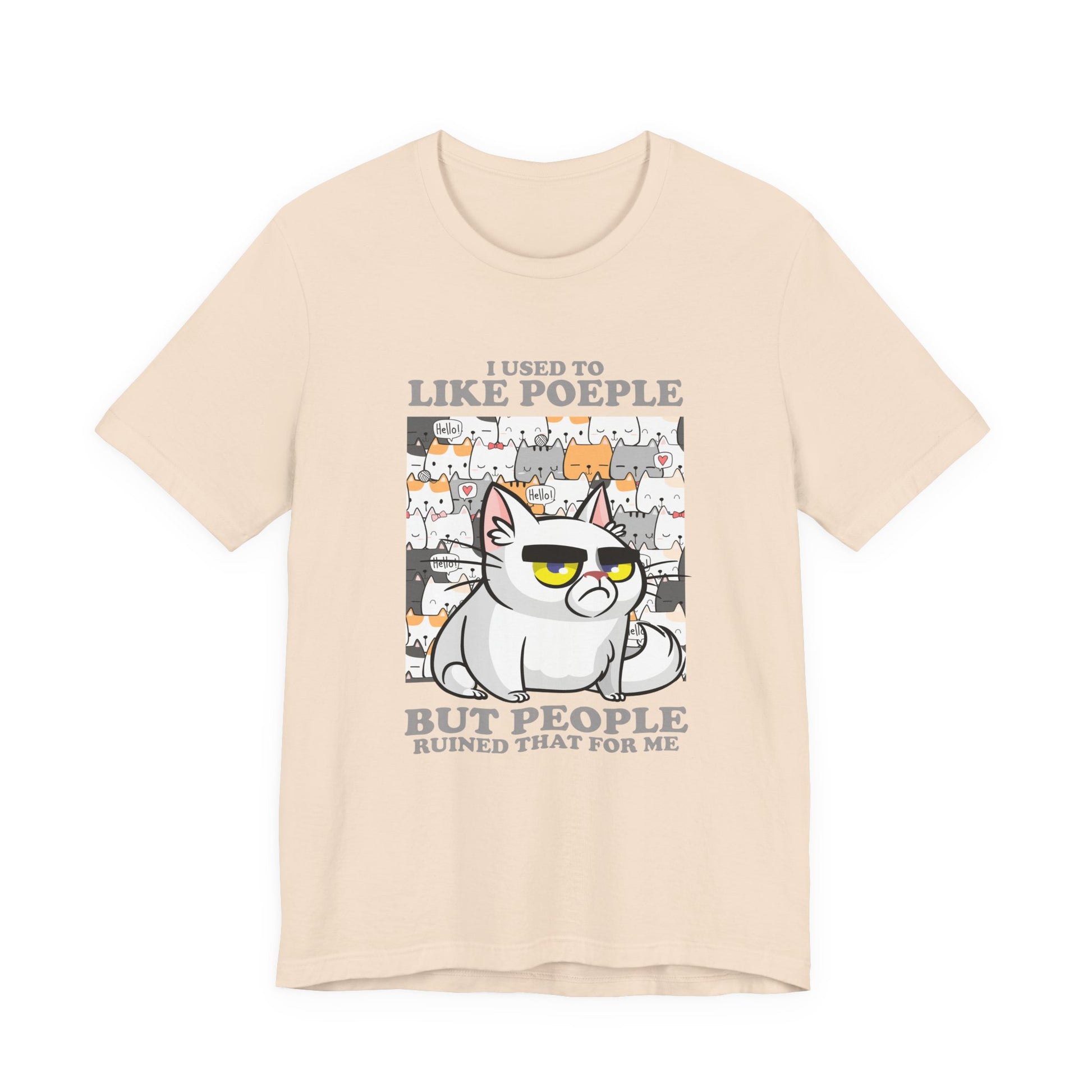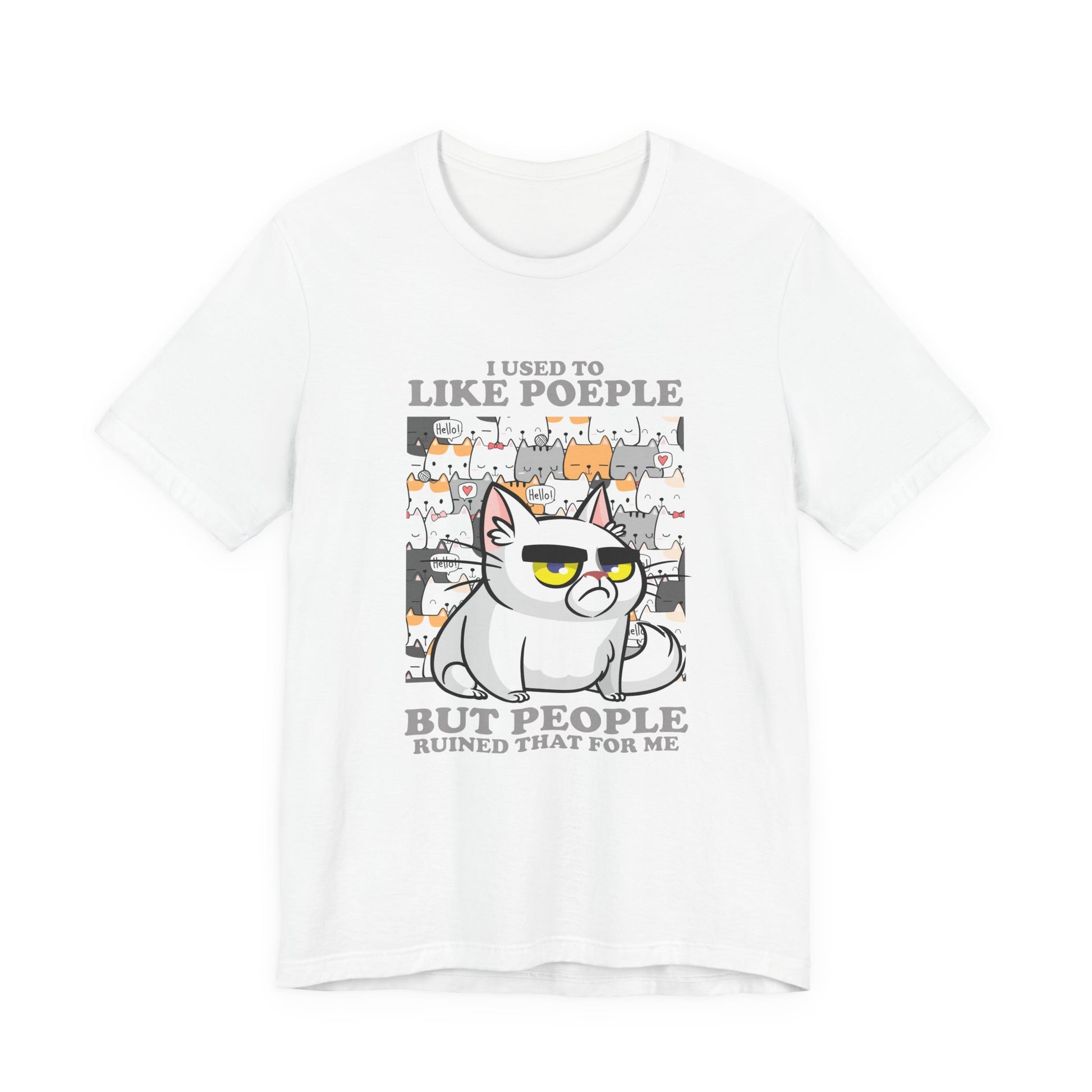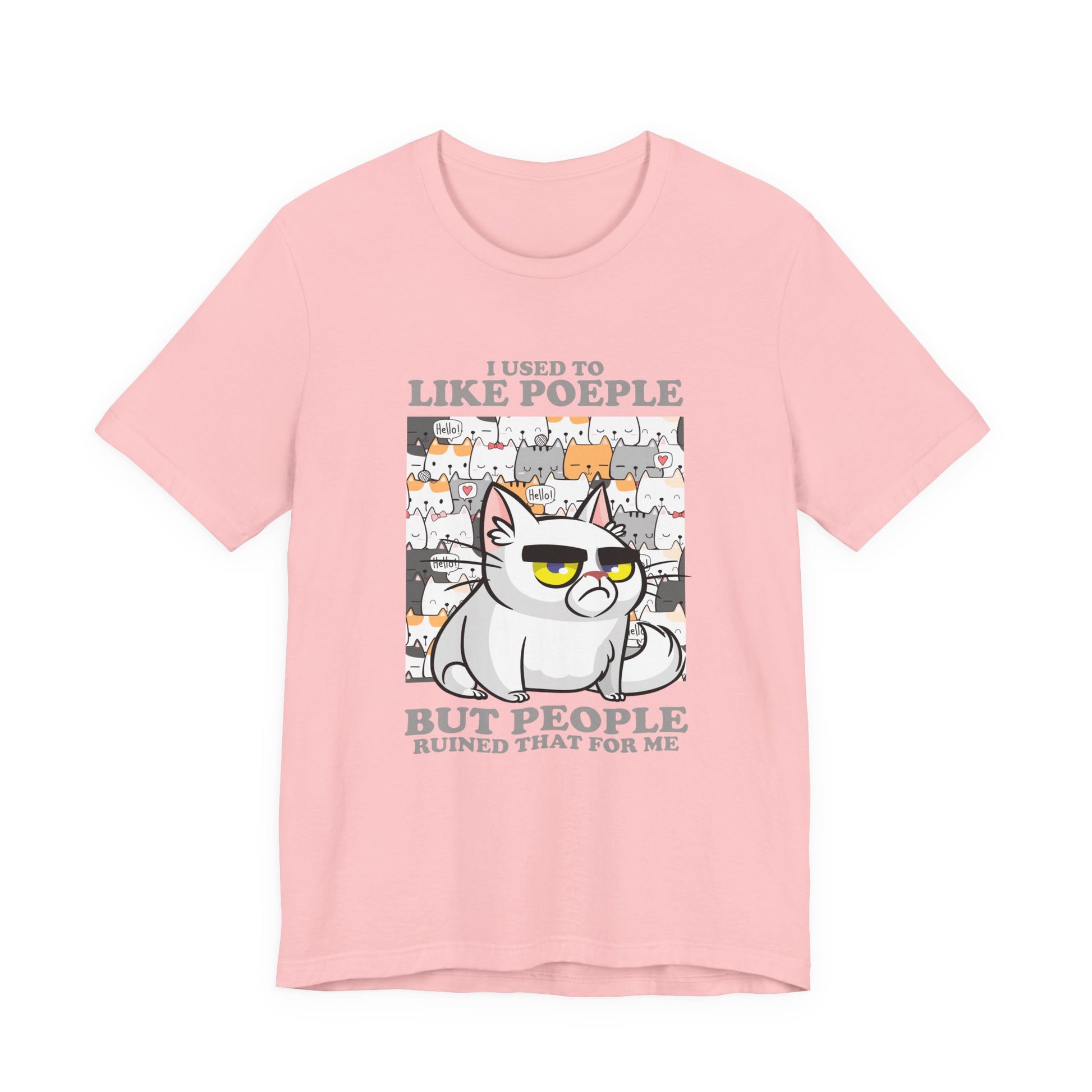 I Used To Like People But People Ruined That For Me T-Shirt – Moody Cat and Cats Background Graphic Tee