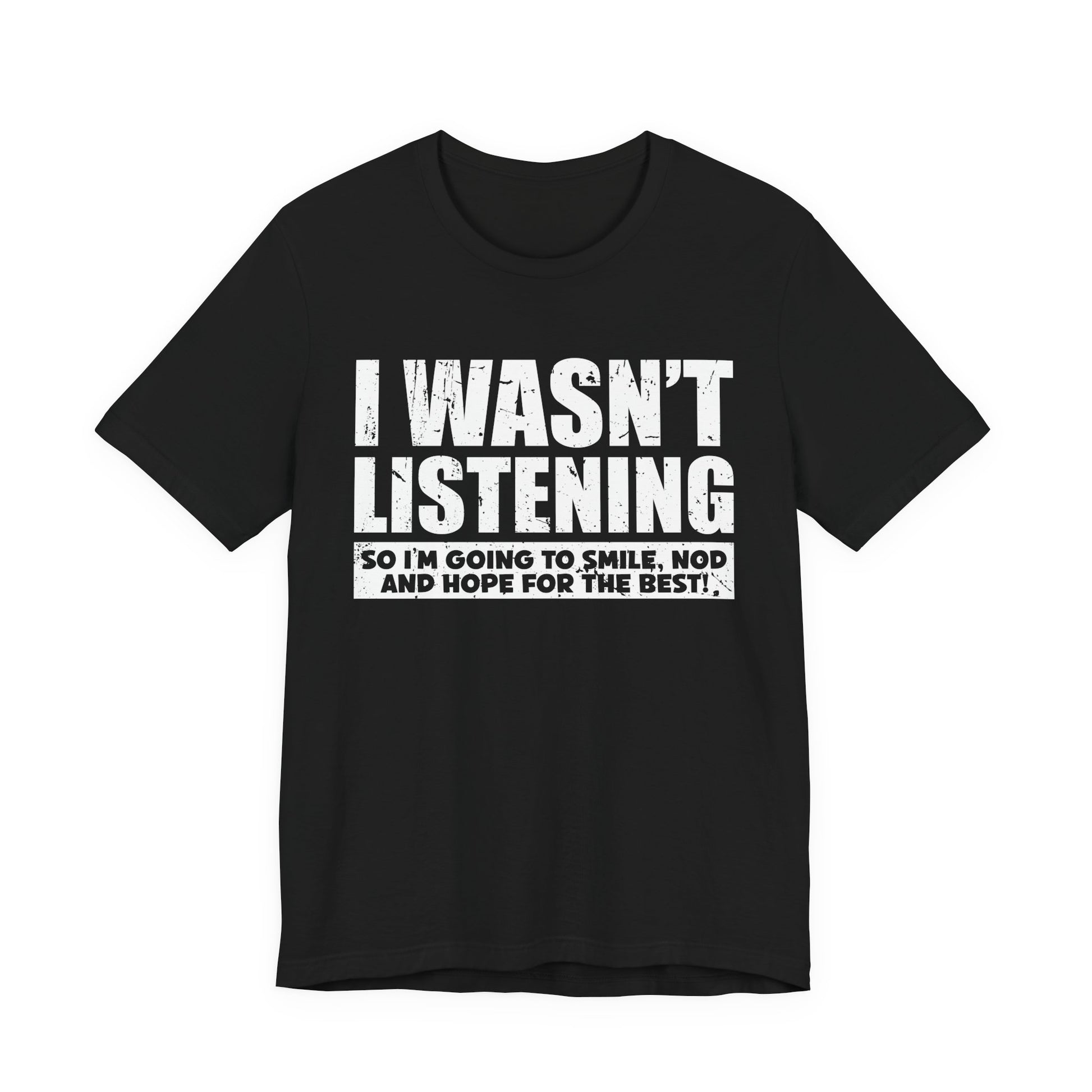 I Wasn’t Listening T-Shirt – Funny Sarcastic Smile and Nod Quote Tee