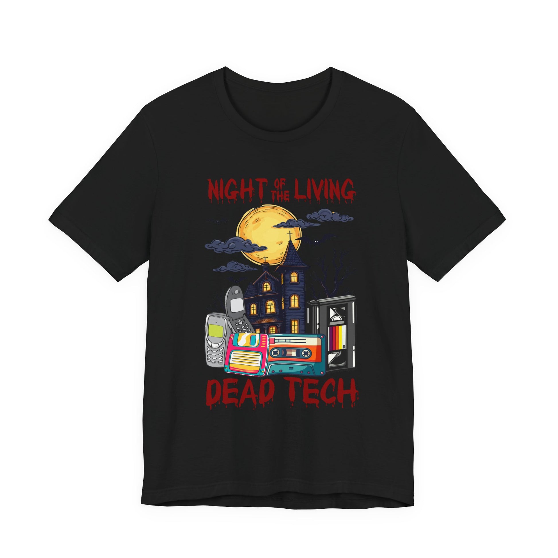 Night of the Living, Dead Tech Tshirt – Haunted Building & Retro Gadgets