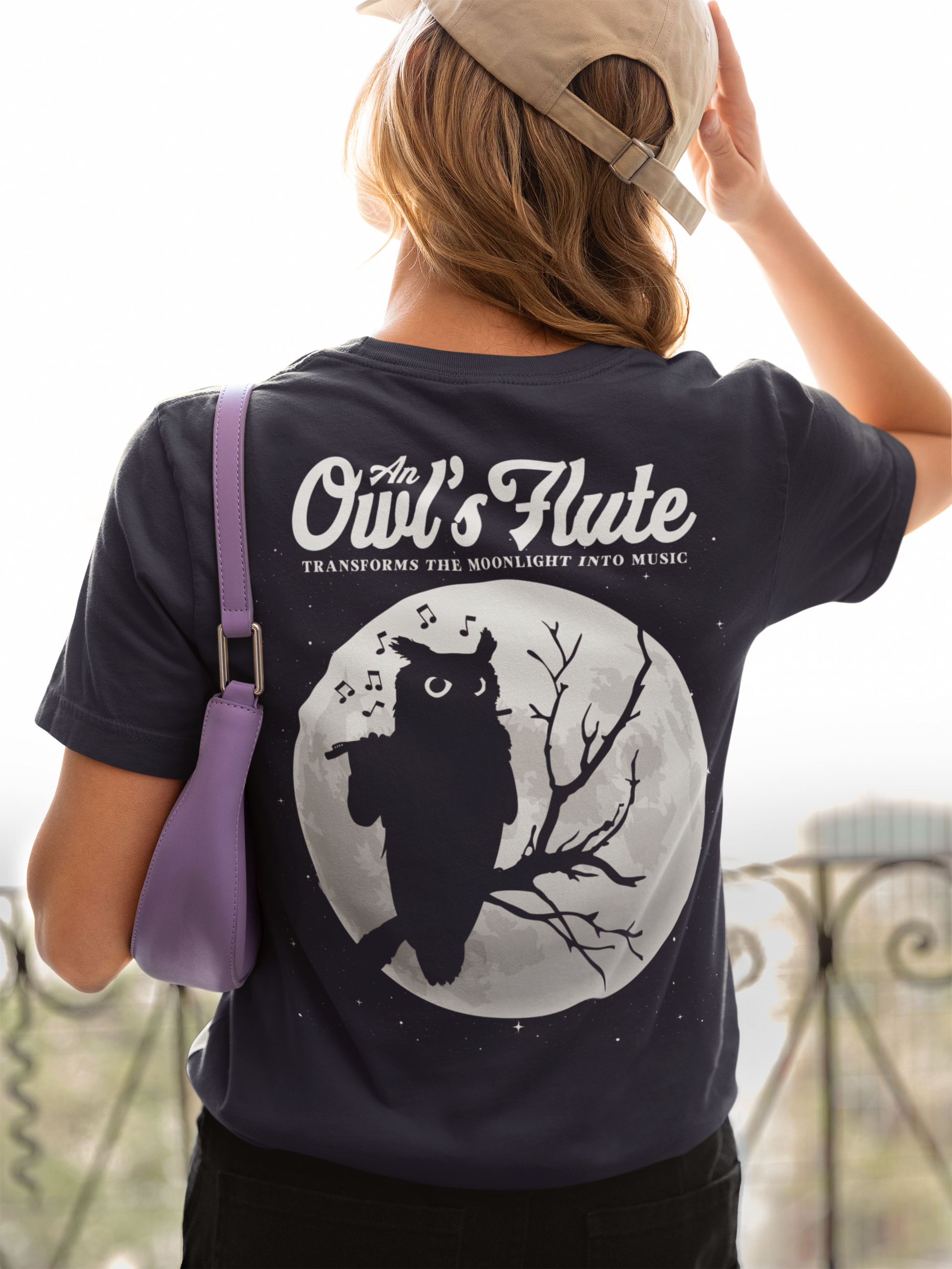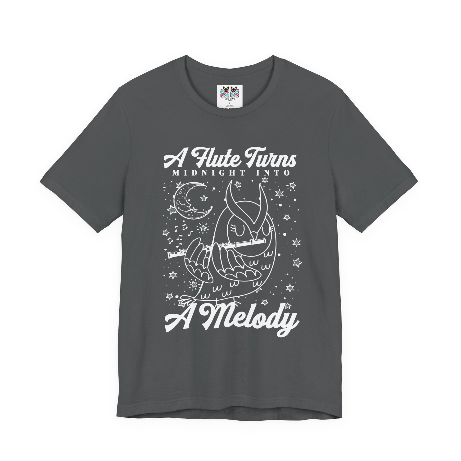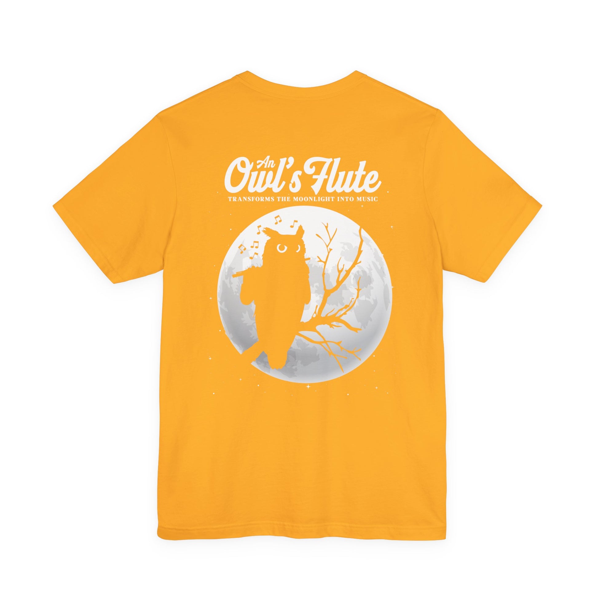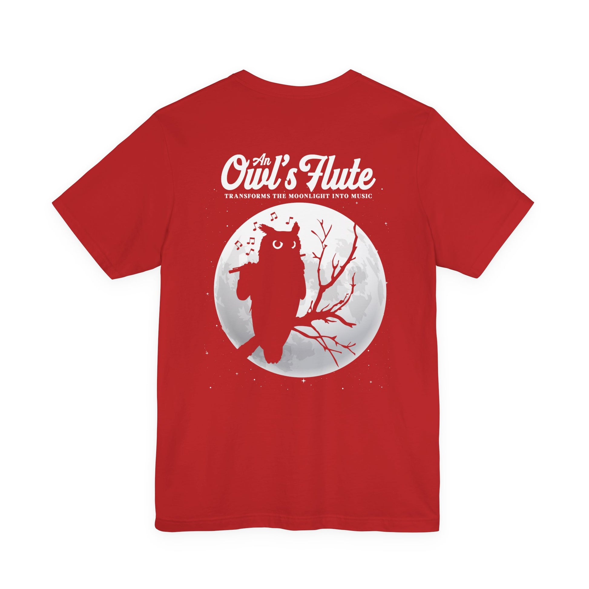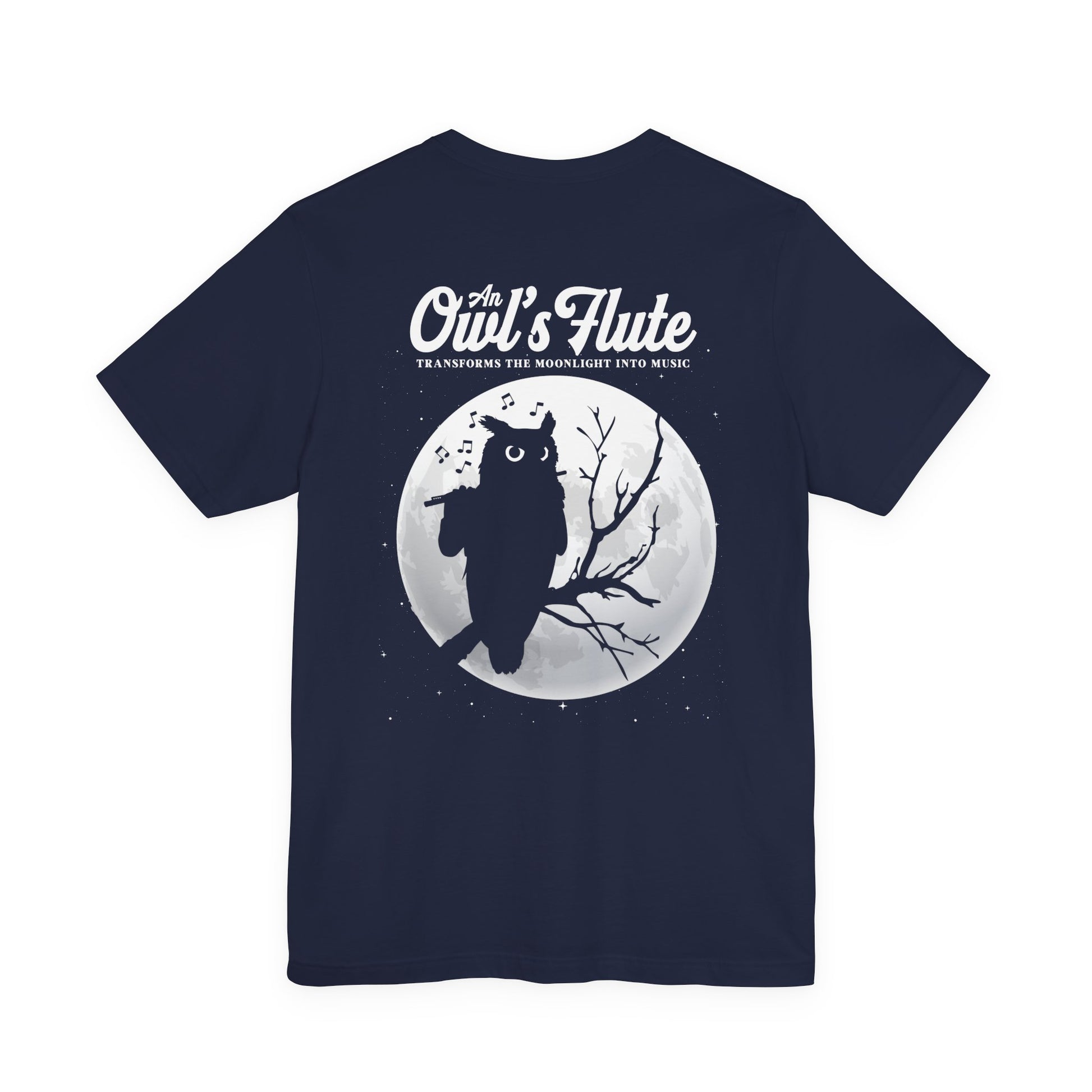 Embrace the magic of night music with this enchanting owl flute t-shirt. The front features an outline-style owl playing the flute with music notes swirling behind it and the phrase “A Flute Turns Midnight into a Melody,” while the back shows an owl playing flute on a tree before a huge full moon with the text “An Owl’s Flute Transforms the Moonlight into Music.” Perfect for flute players, owl lovers, band and orchestra members, and fans of mystical night designs, this tee is great for concerts, rehearsals, school events, or cozy evening wear. It also makes a unique gift for musicians and dreamers who feel most inspired under the moonlight.