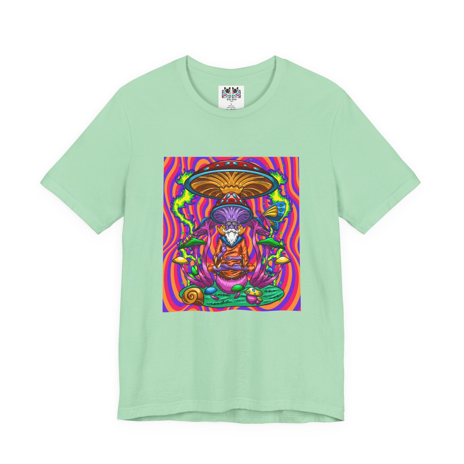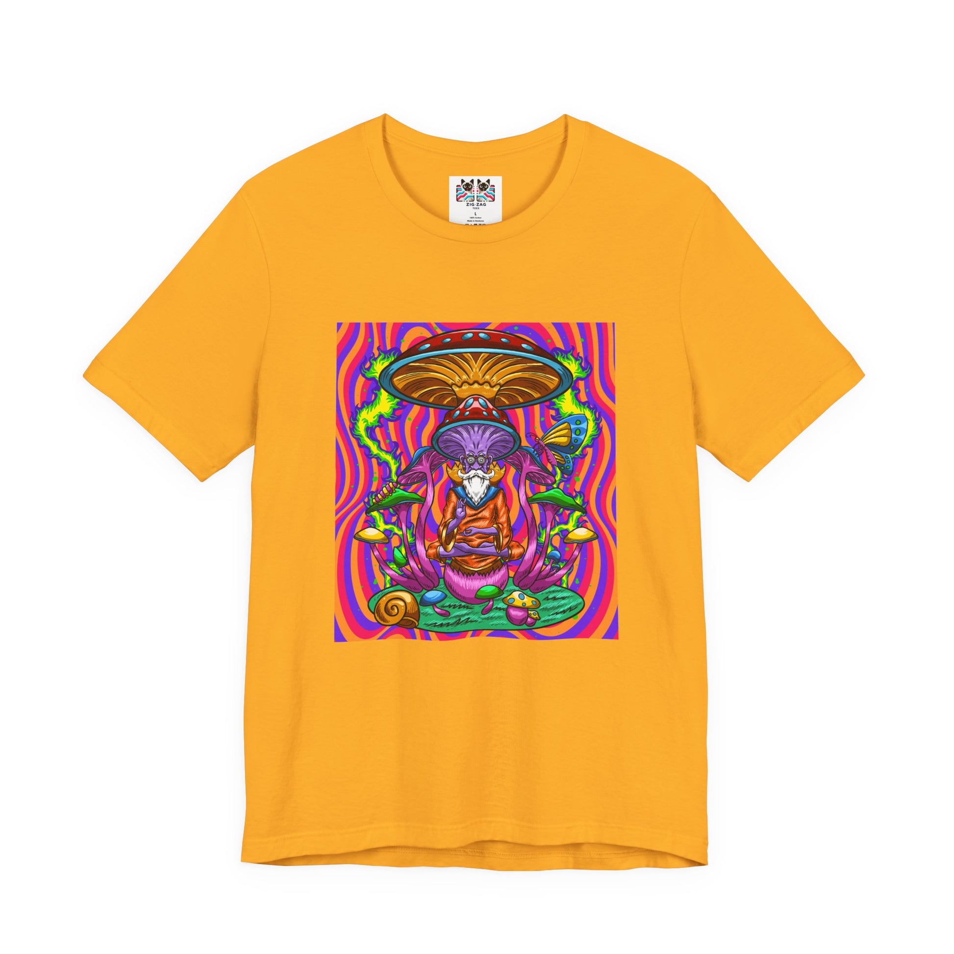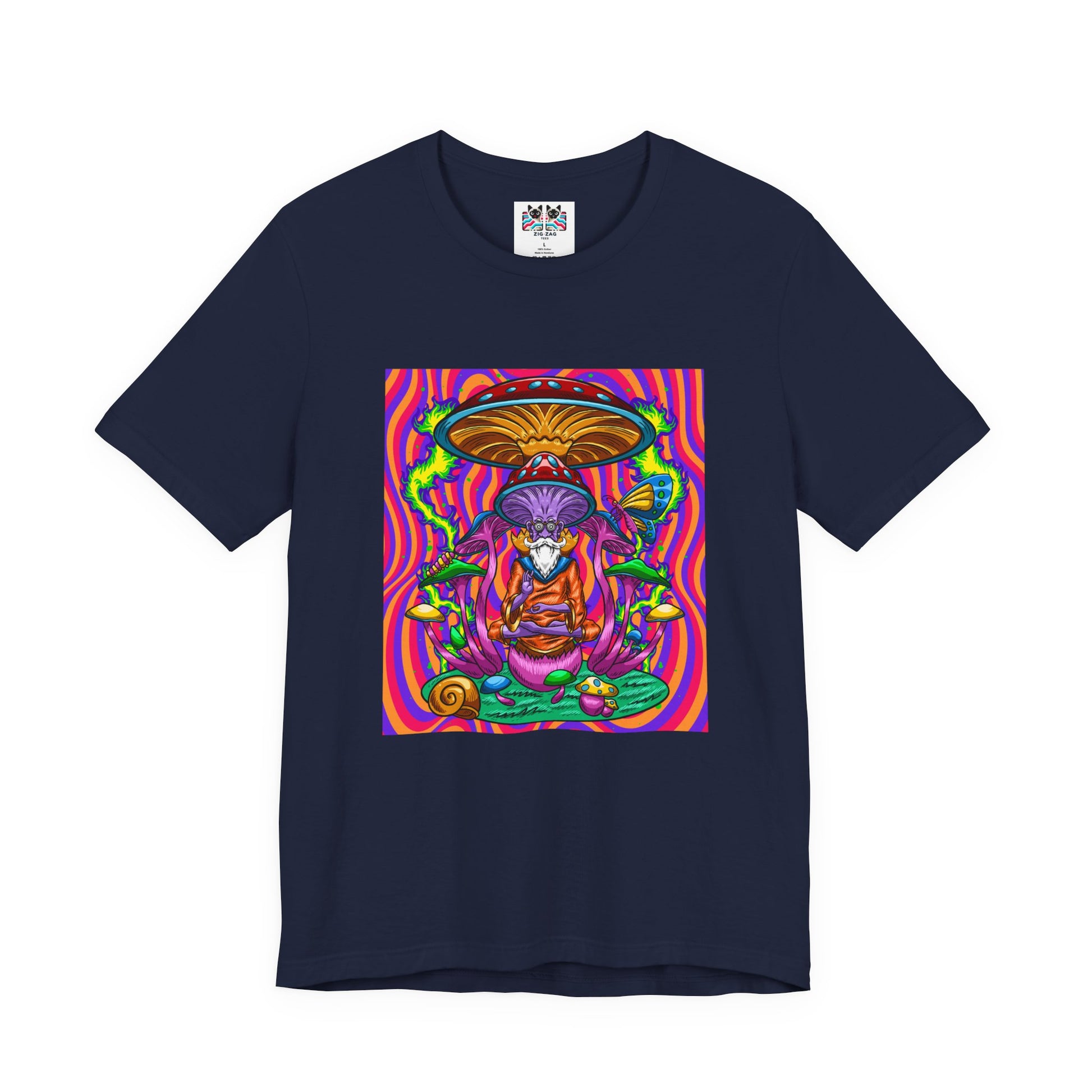 Trip into a colorful fantasy world with this psychedelic mushroom t-shirt featuring a trippy mushroom wizard illustration on the front in vibrant neon colors. The back showcases a glowing moonlit forest of animated mushrooms swirling with colorful smoke and the bold phrase “Stay Wild & High” in retro script. Perfect for festival goers, rave and EDM fans, psychedelic art lovers, and anyone with a wild side, this bold graphic tee is ideal for concerts, parties, and laid-back streetwear.