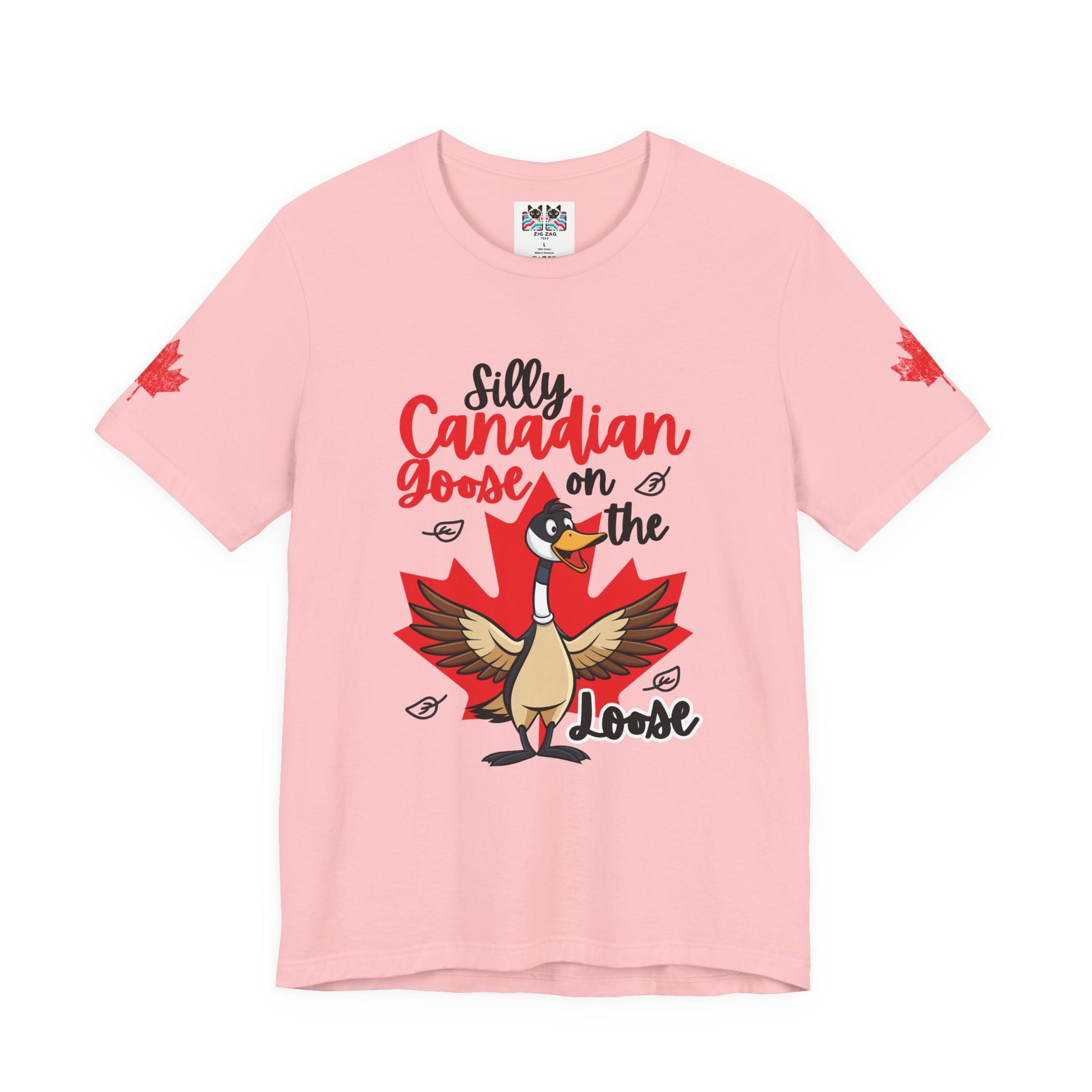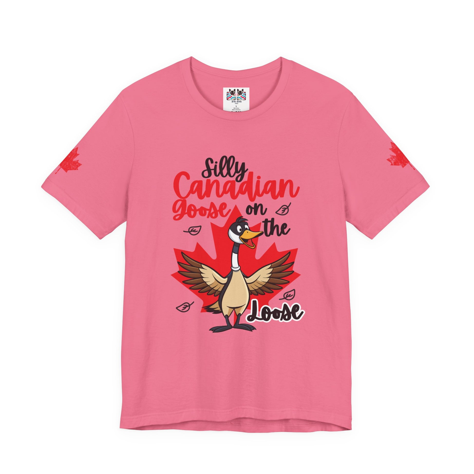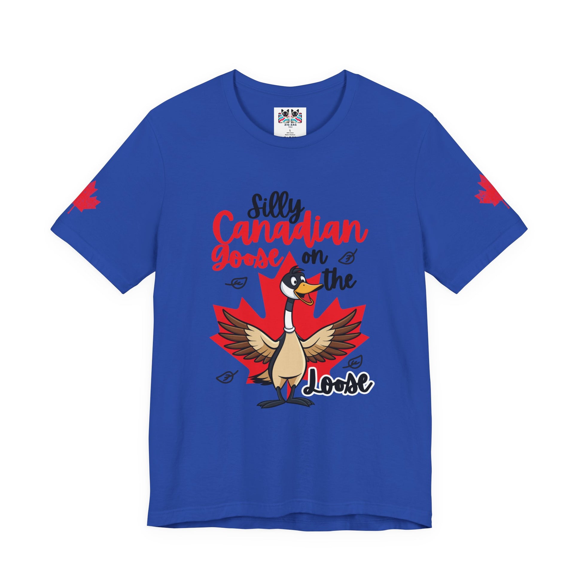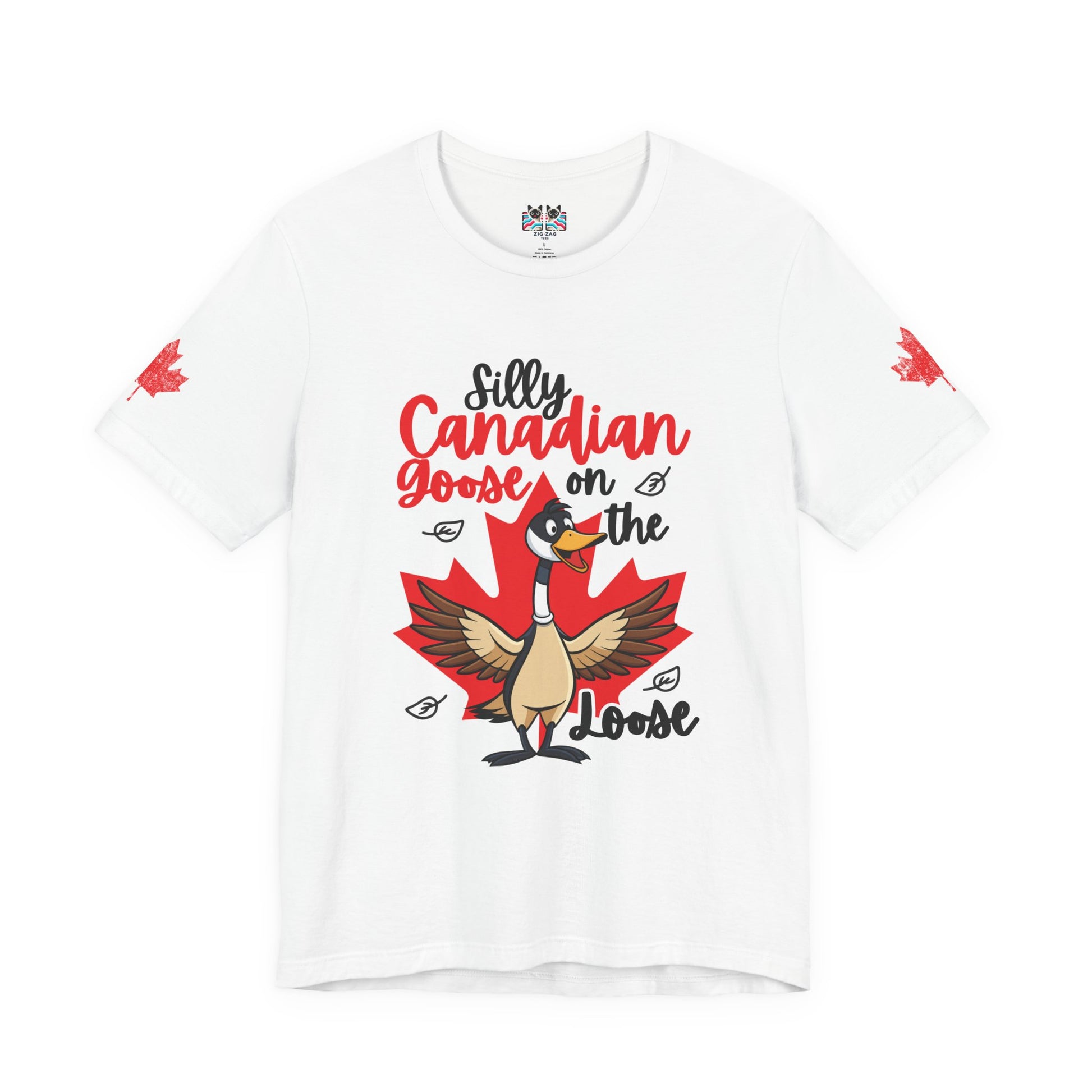 Show off some Canadian humor with this playful tee featuring a Canadian Goose standing proudly with its wings wide open. A large red maple leaf shape in the background and the fun caption “Silly Canadian Goose On the Loose” make this shirt perfect for those who love animal graphics, laughter, and patriotic style. Soft, comfortable, and ideal for Canada Day, outdoor adventures, or casual everyday wear, this tee celebrates Canada's most notorious feathered character in style.