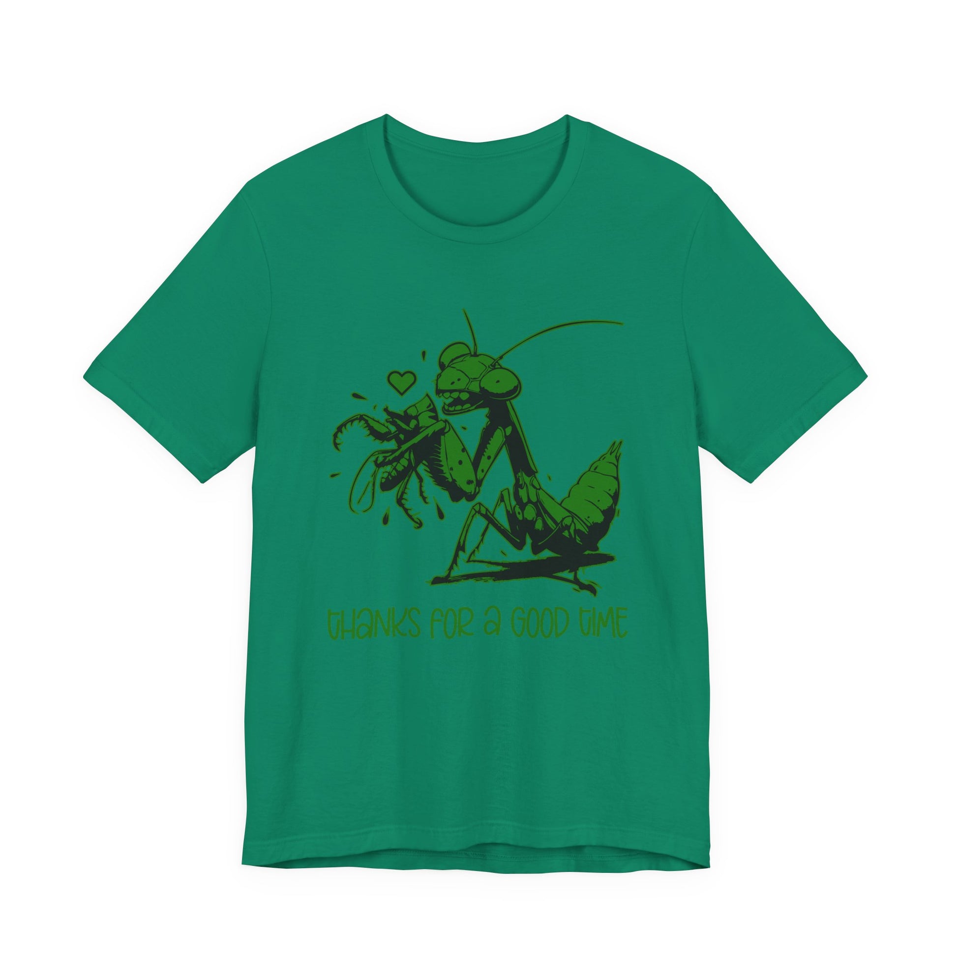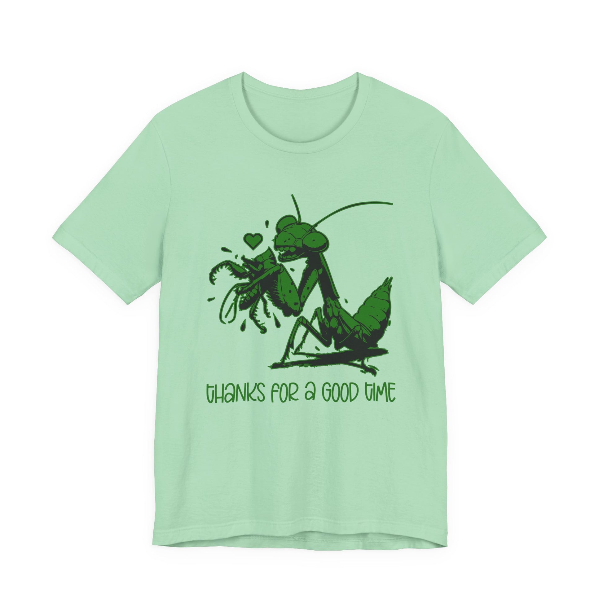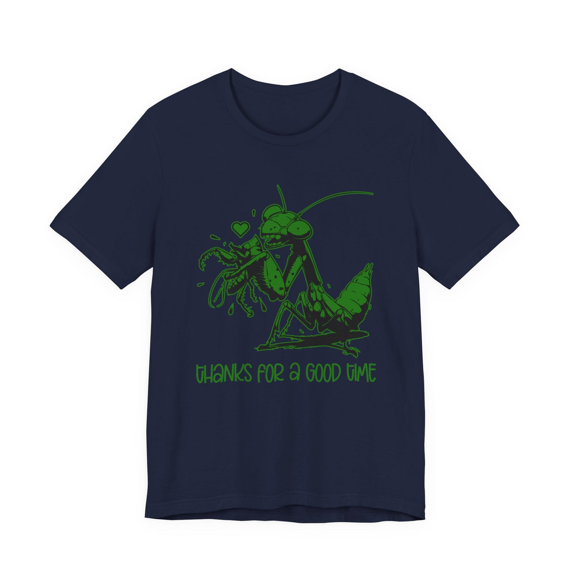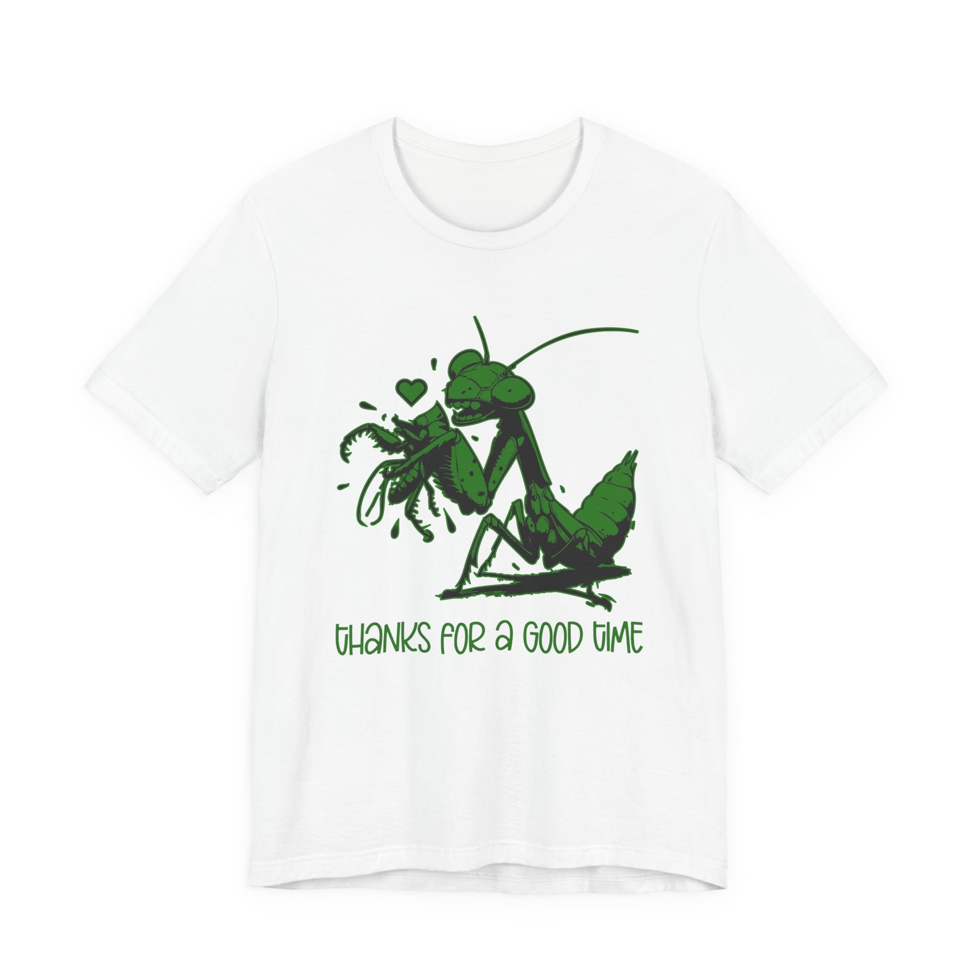 Thanks for a Good Time T-Shirt – Playful Grasshopper Eating Male Graphic Tee