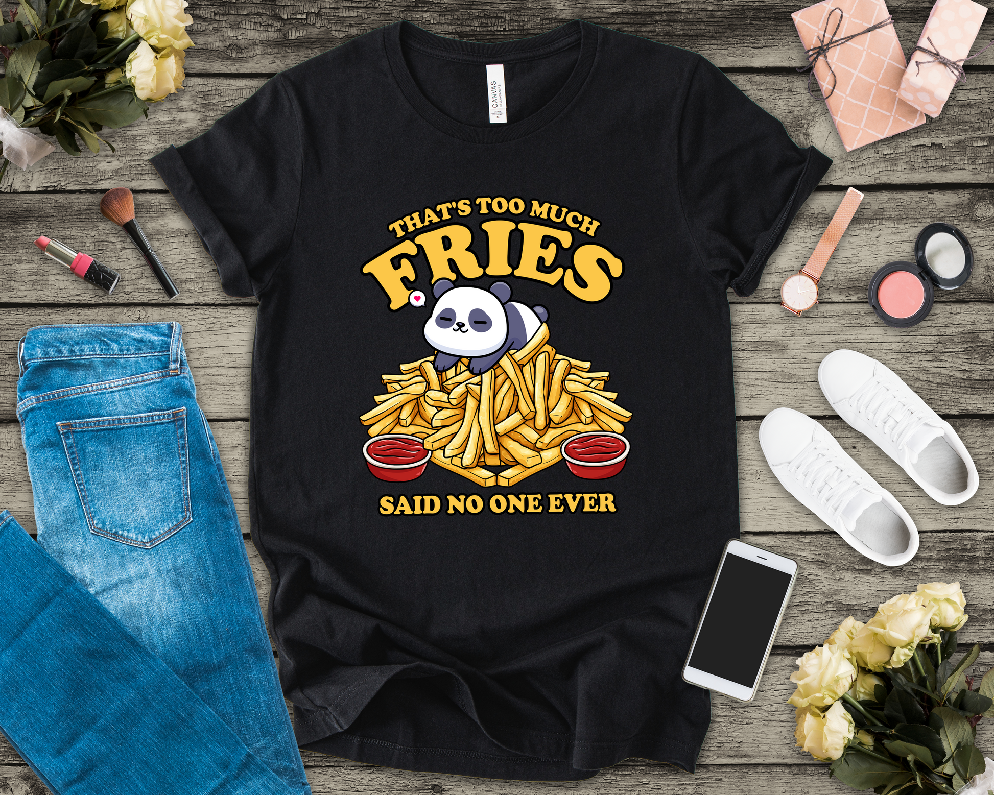 That’s Too Much Fries Said No One Ever T-Shirt – Cute Baby Panda and Fries Graphic Tee