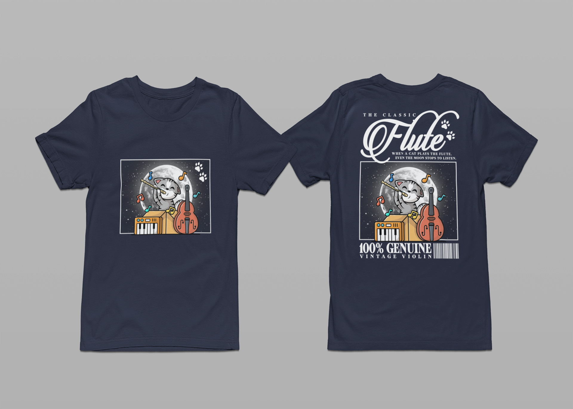 Bring some magical music to your wardrobe with this “The Classic FLUTE” t-shirt featuring a cute cat playing the flute under a large moon, surrounded by music notes and other instruments. The dreamy moonlit background and whimsical artwork make this tee perfect for flute players, cat lovers, band kids, orchestra members, and music teachers. Ideal for rehearsals, concerts, school events, or everyday wear, it also makes a unique gift for anyone who loves cats, classical music, and night-sky vibes.