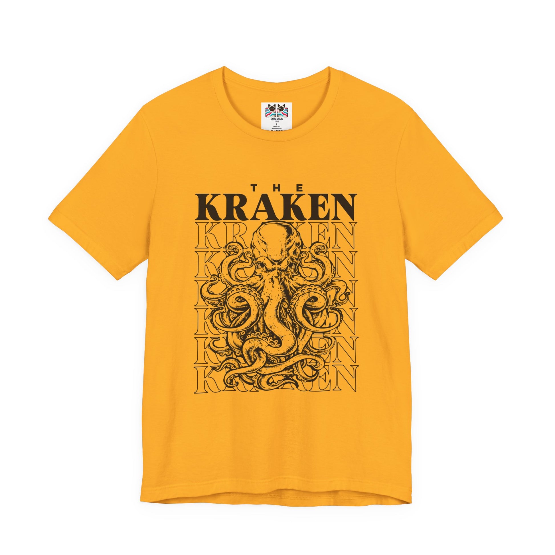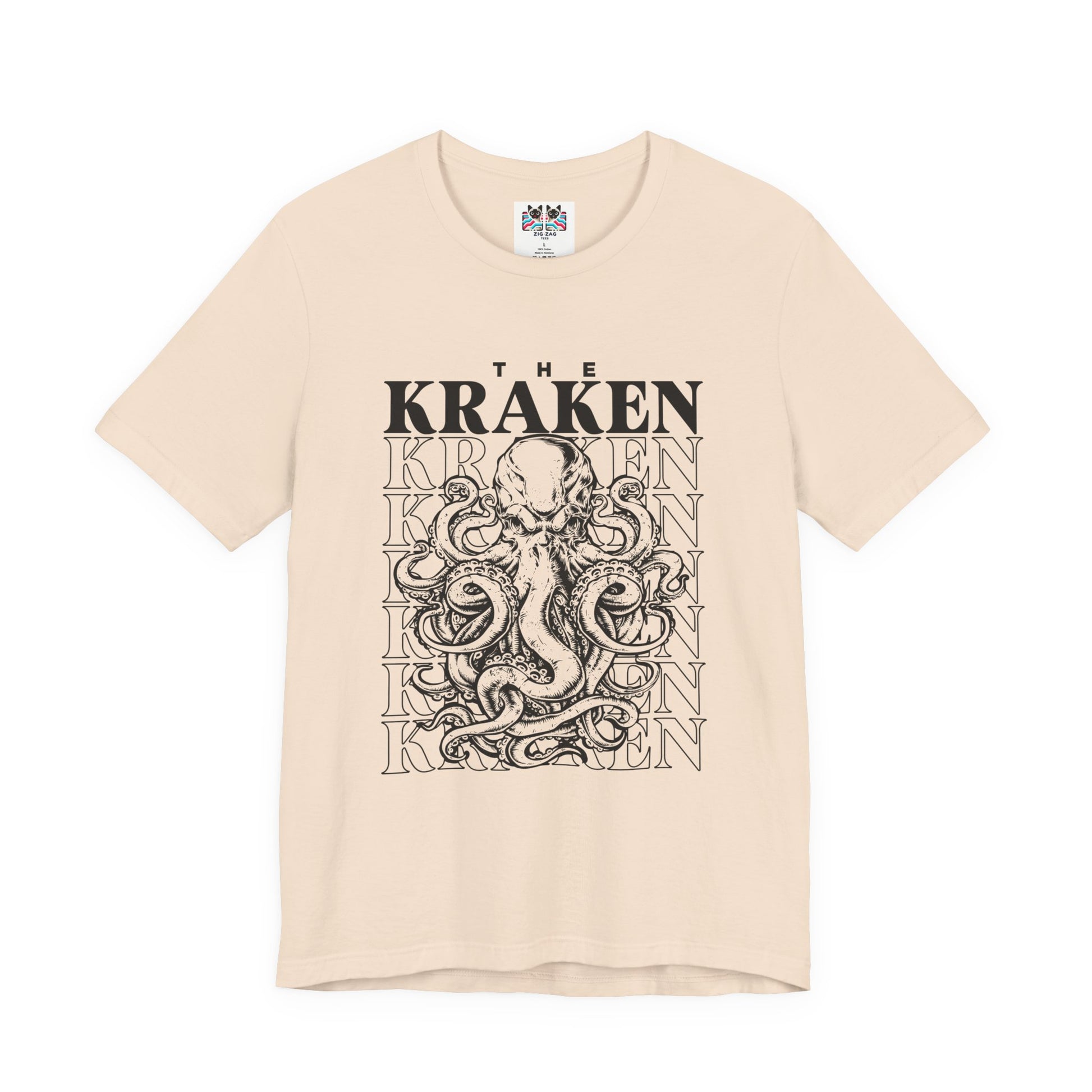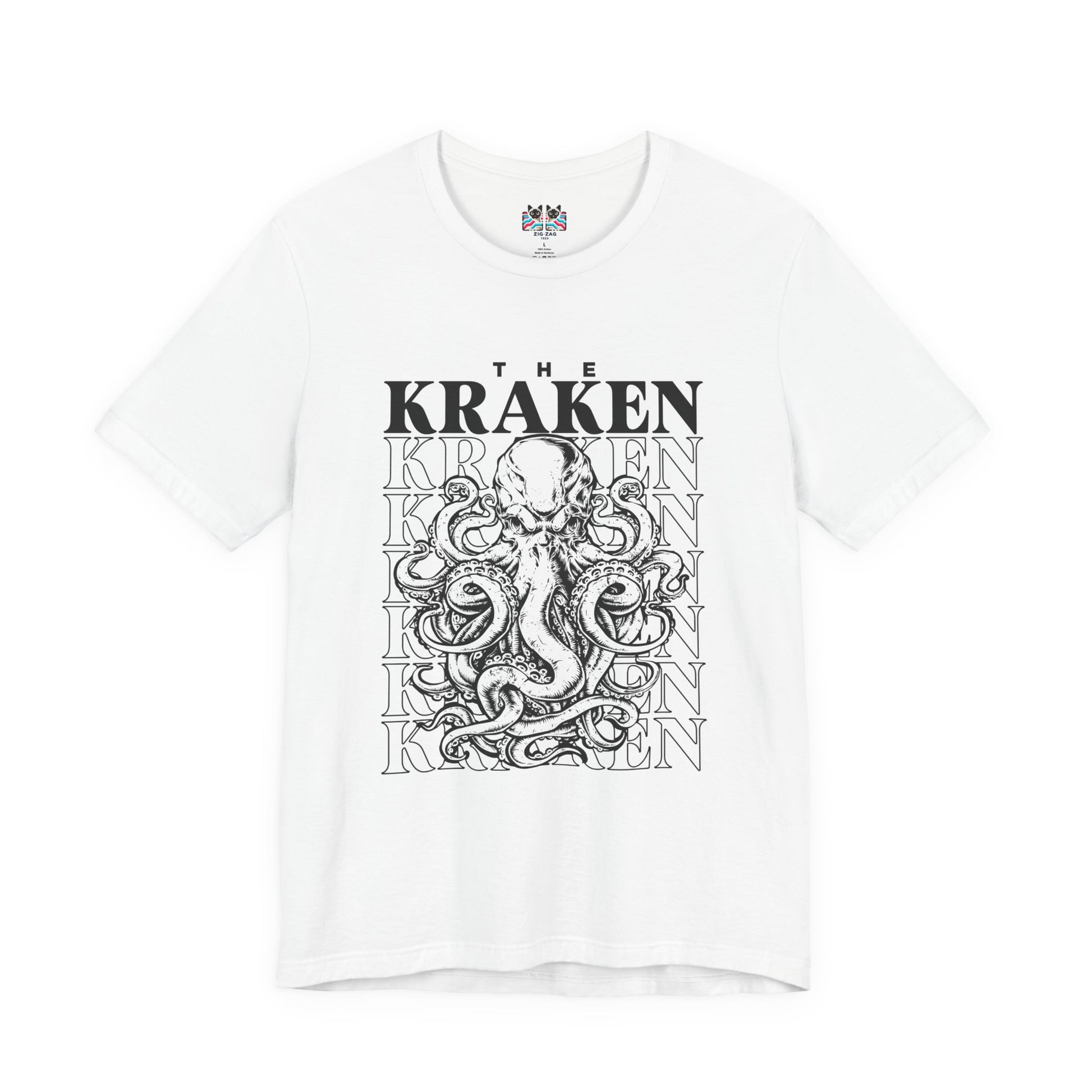 Unleash the depths with this epic Kraken t-shirt featuring a highly detailed sea monster illustration on the front with bold “The Kraken” text and layered lettering behind the tentacles. The back shows the full kraken rising from the ocean, wrapping its tentacles around a sailing ship in a dramatic black-and-white scene framed by the moon. Perfect for ocean lovers, nautical tattoo art fans, gamers, and mythic creature enthusiasts, this tee is great for everyday wear, conventions, concerts, or pirate-themed events.