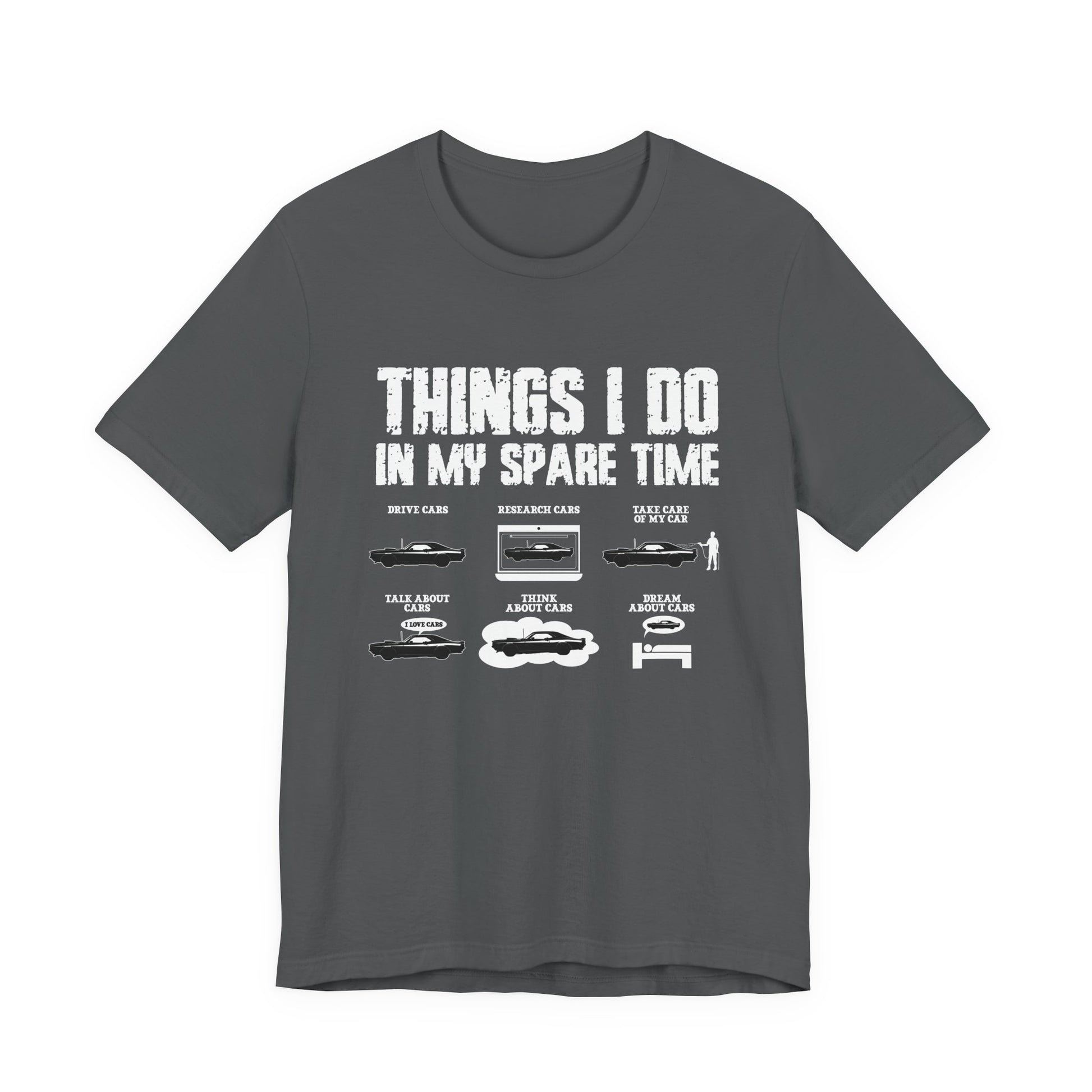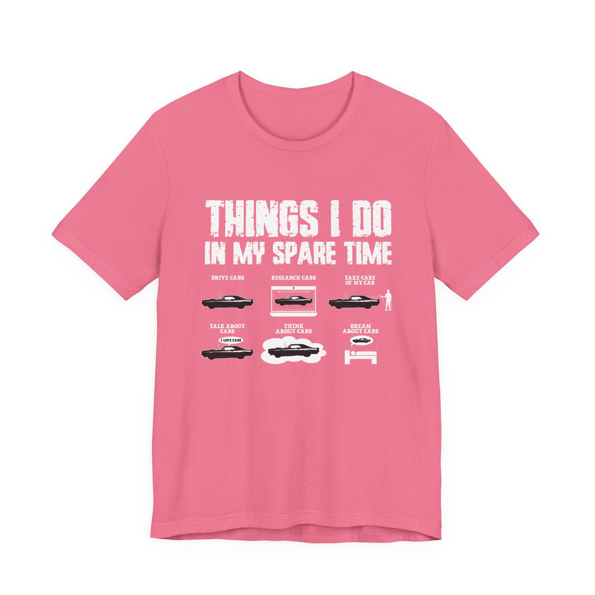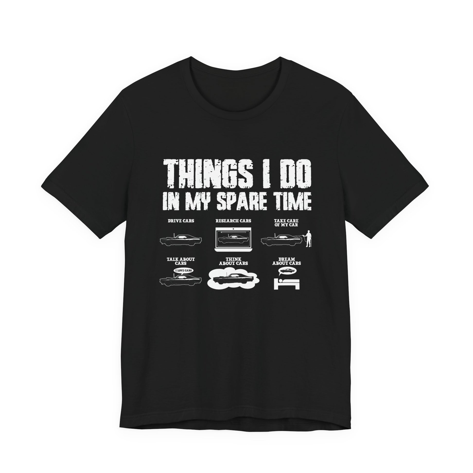 Celebrate your passion for cars with this fun and relatable T-shirt! Featuring bold text “Things I Do In My Spare Time,” followed by a list of car-related activities like “Drive Cars, Research Cars, Take care of my cars, Talk about Cars, Think about Cars, Dream about Cars,” each accompanied by a car graphic. Perfect for car enthusiasts who live and breathe everything automotive. A great gift for gearheads, mechanics, or anyone obsessed with all things on wheels.