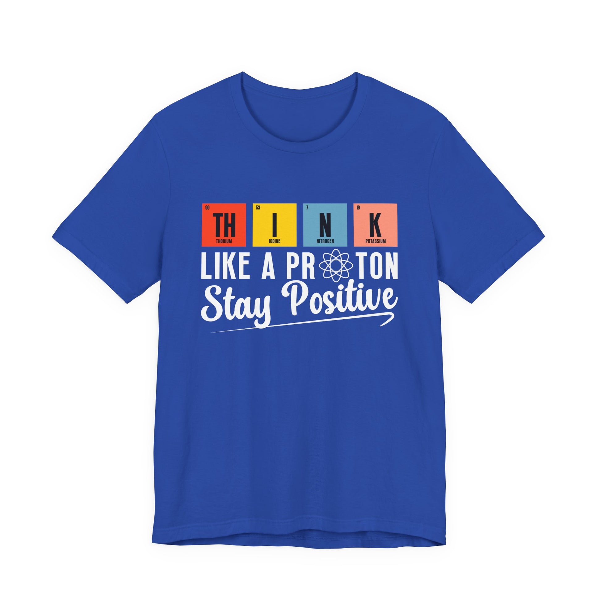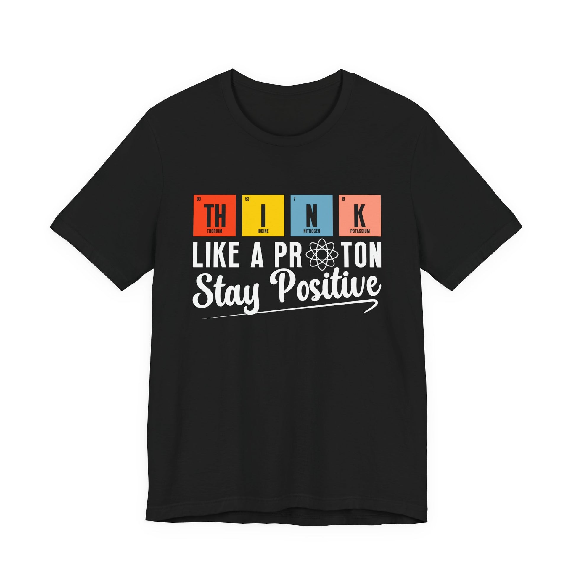 Think Like a Proton Stay Positive T-Shirt – Funny Science Chemistry Pun Tee