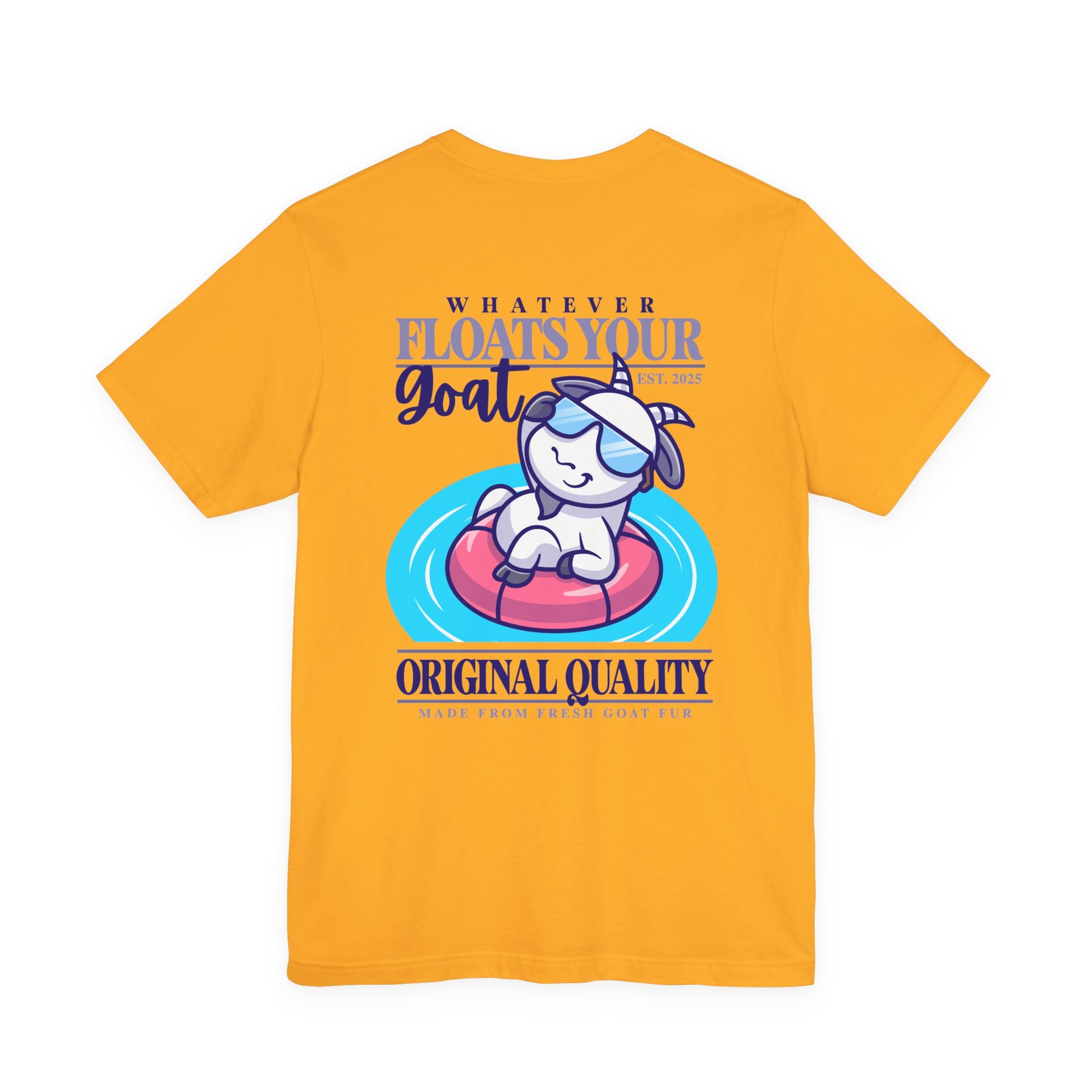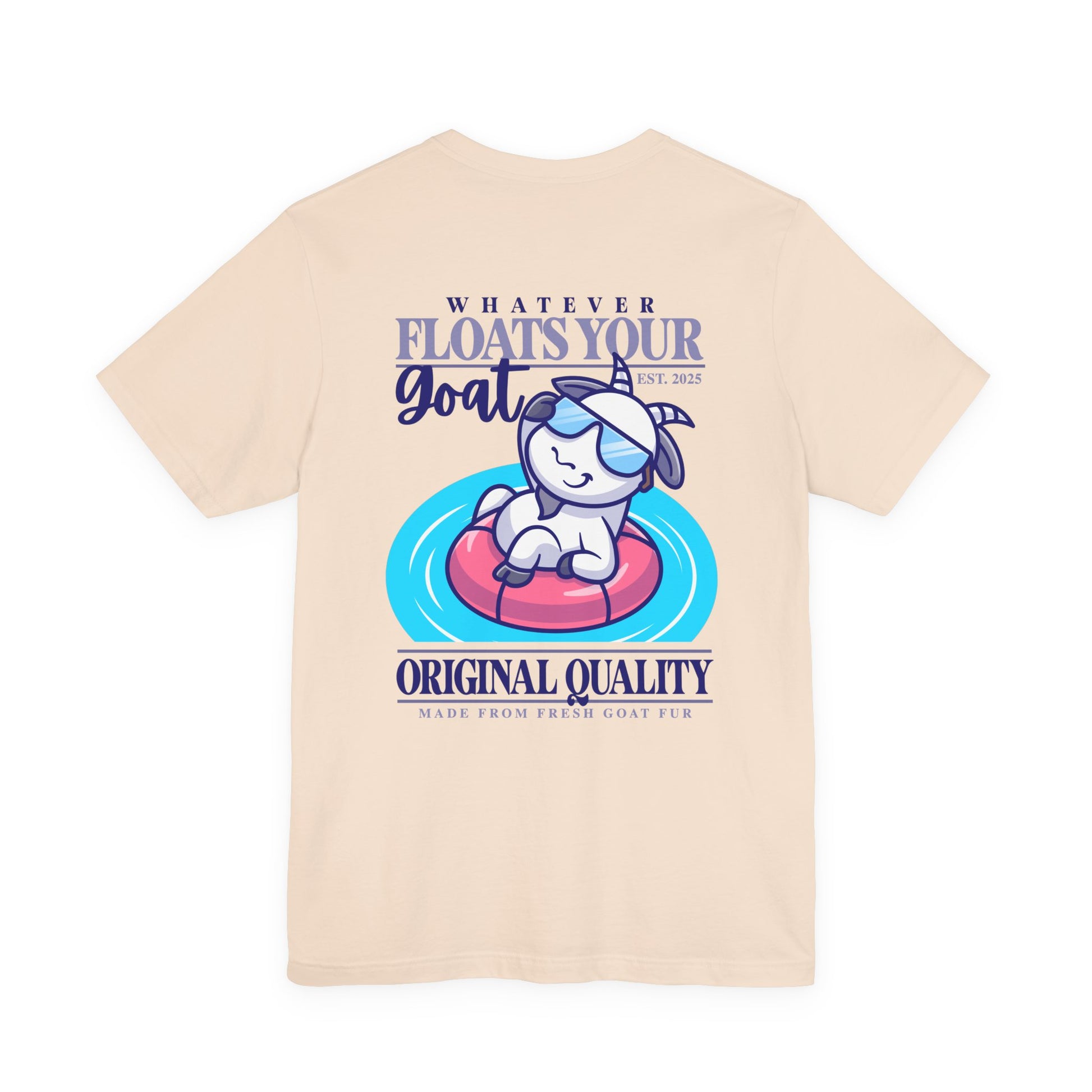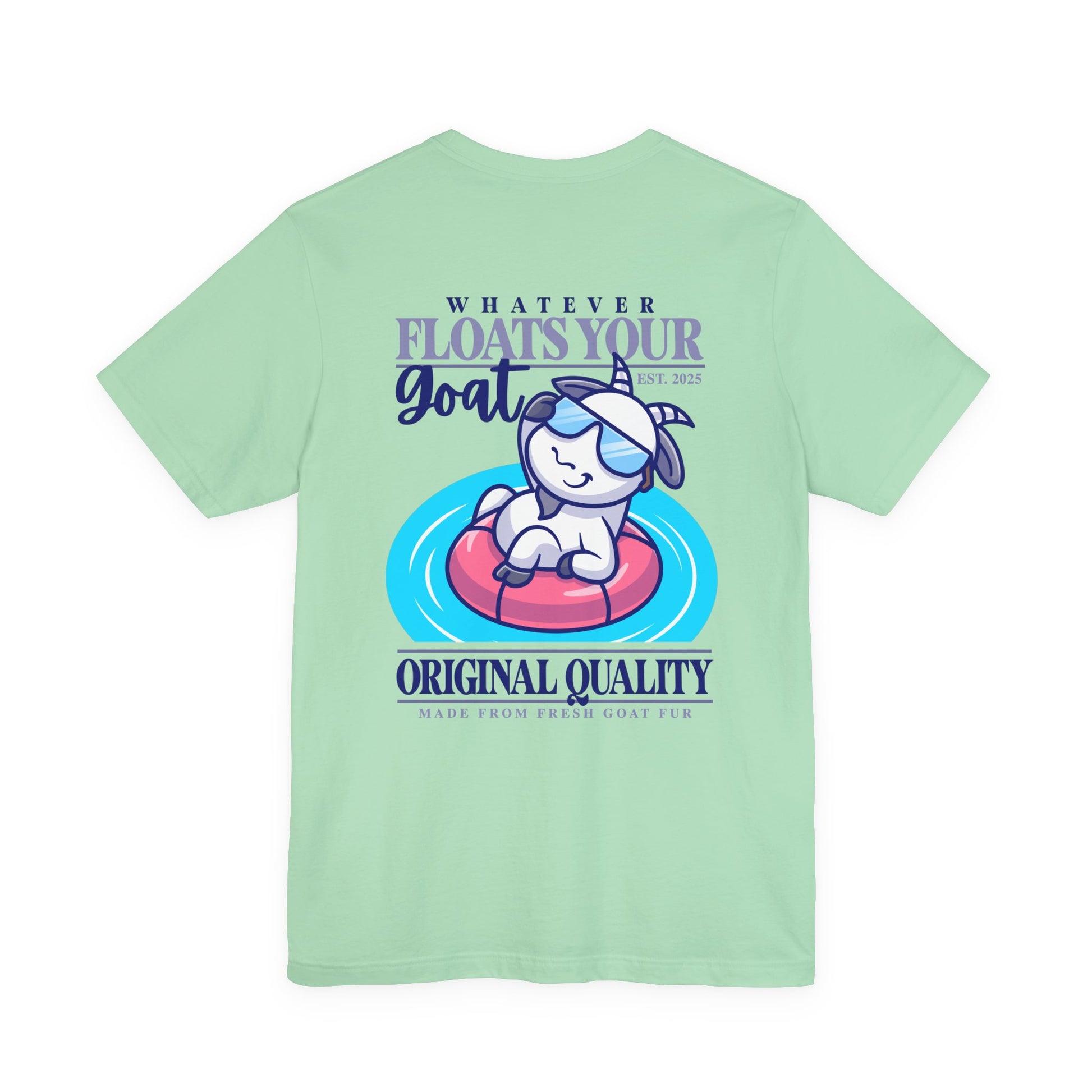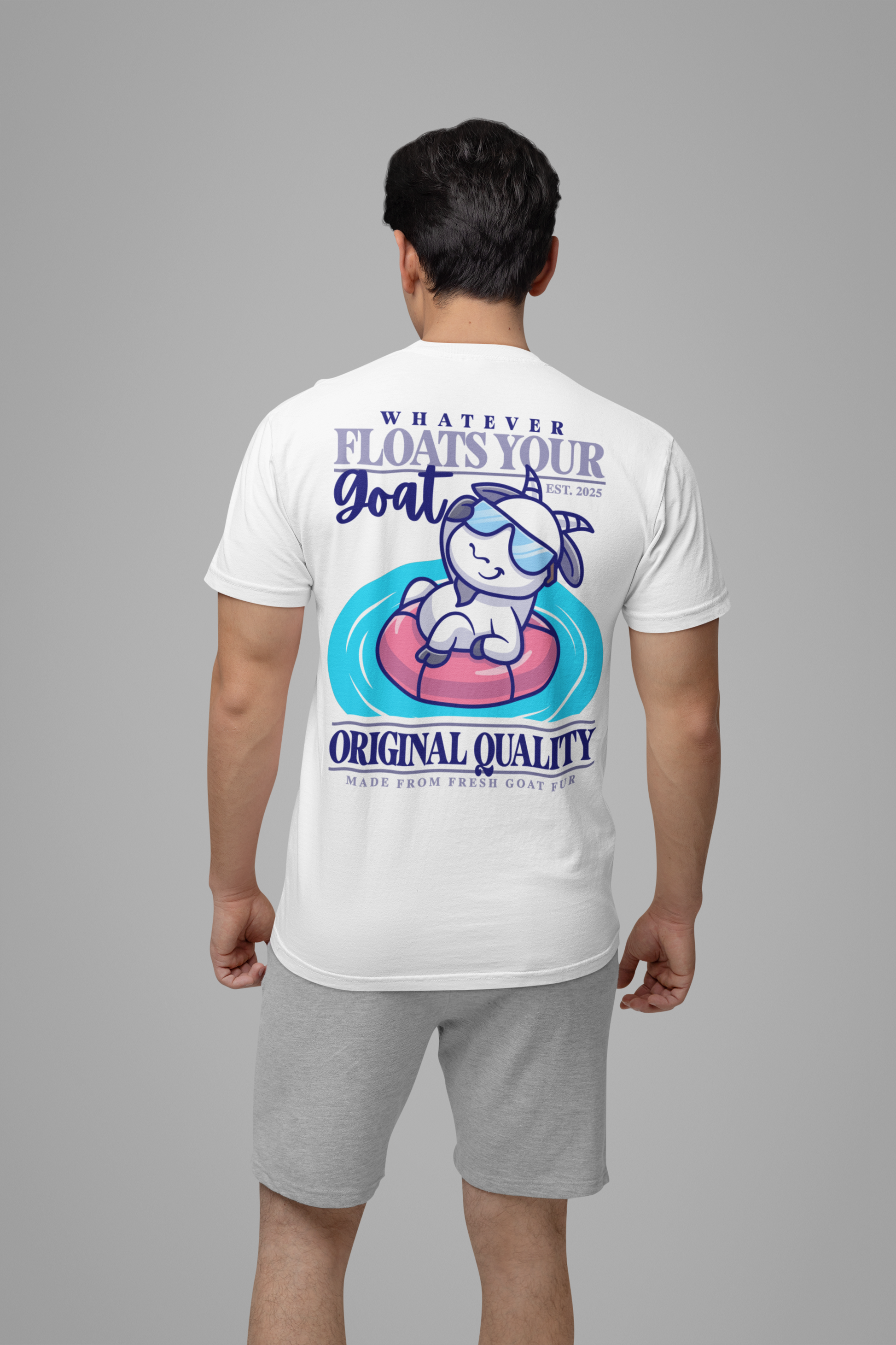 Relax in style with this fun and quirky t-shirt featuring a cool goat floating on an air tube in the water, sporting sunglasses and a laid-back attitude. The playful text “Whatever Floats Your Goat” adds a humorous twist perfect for animal lovers, summer vibes, and casual wear. Made from soft, breathable fabric, this tee is great for pool parties, beach days, or as a lighthearted gift for goat fans and anyone who loves to chill.