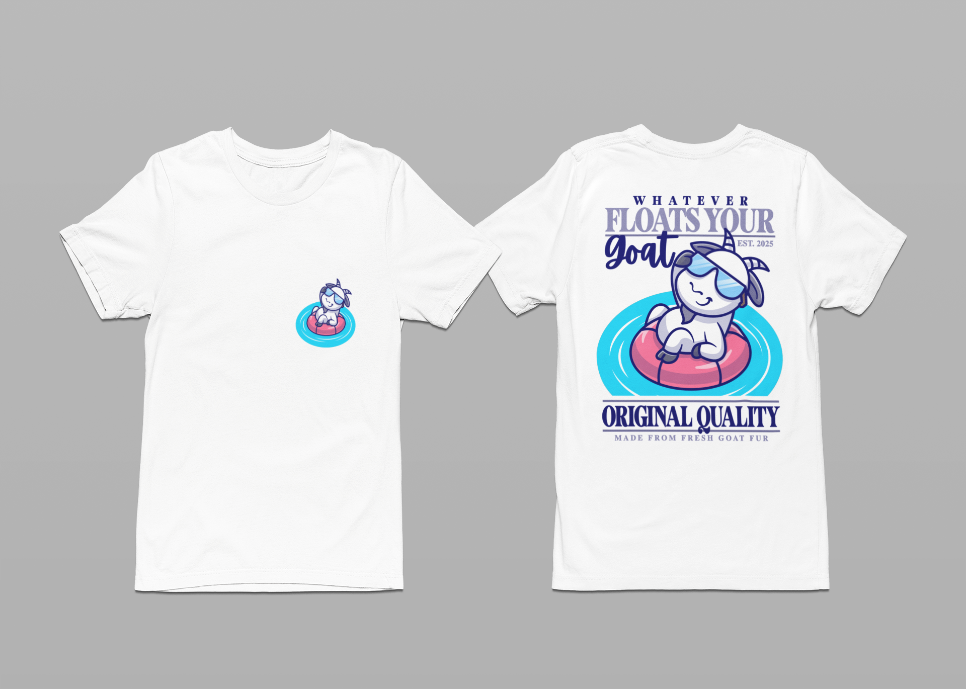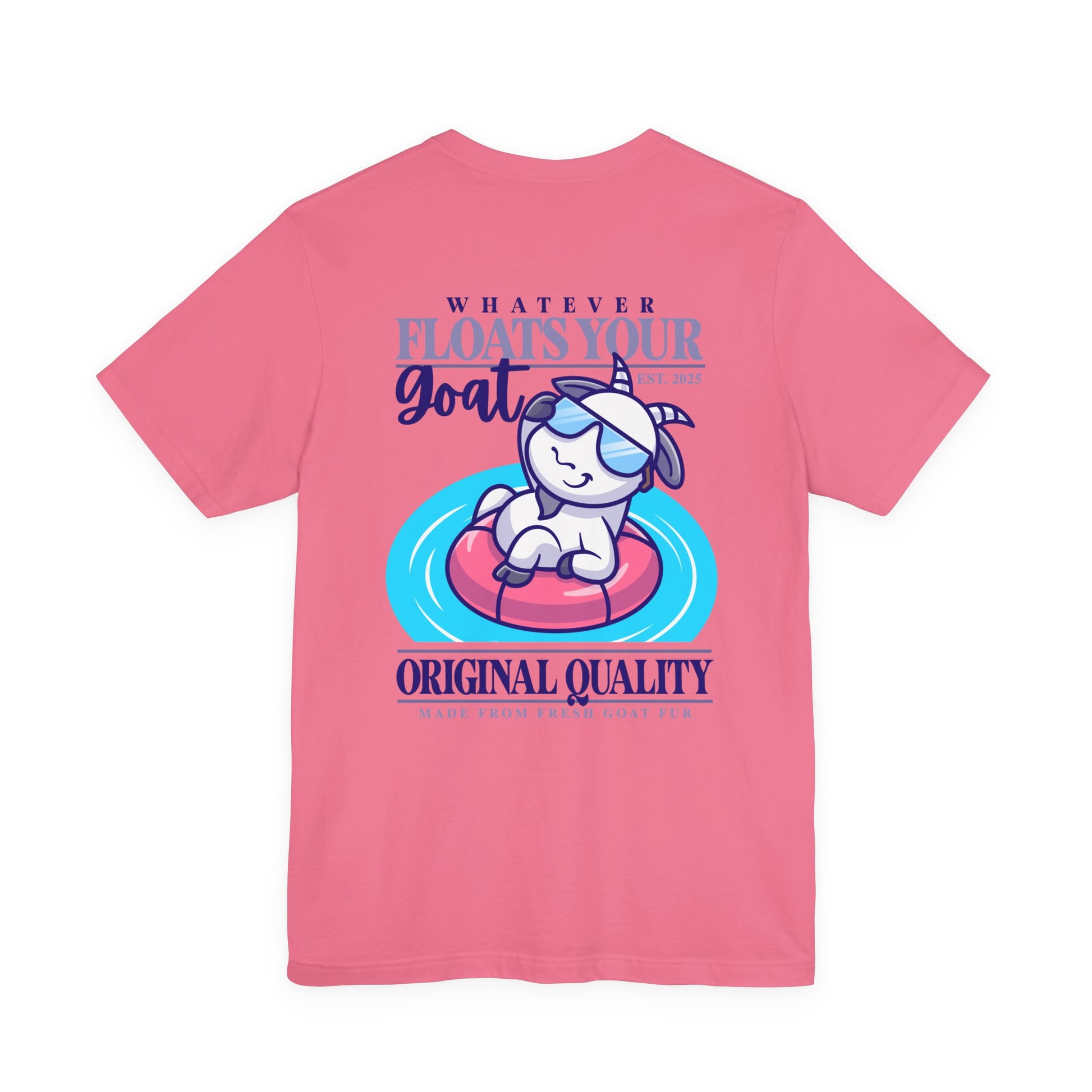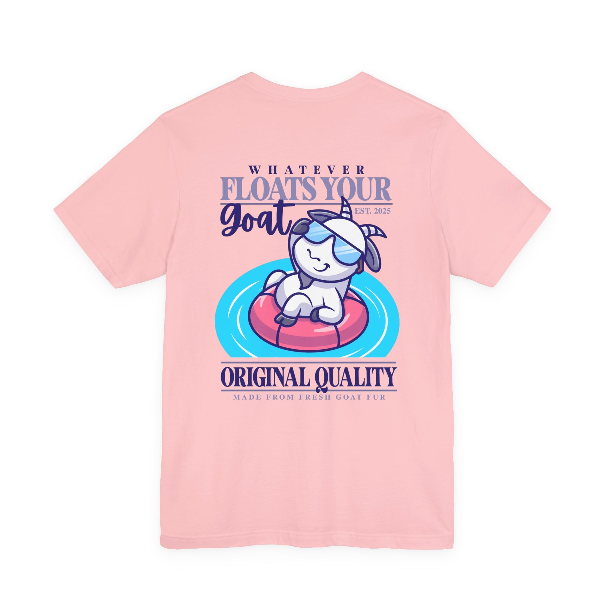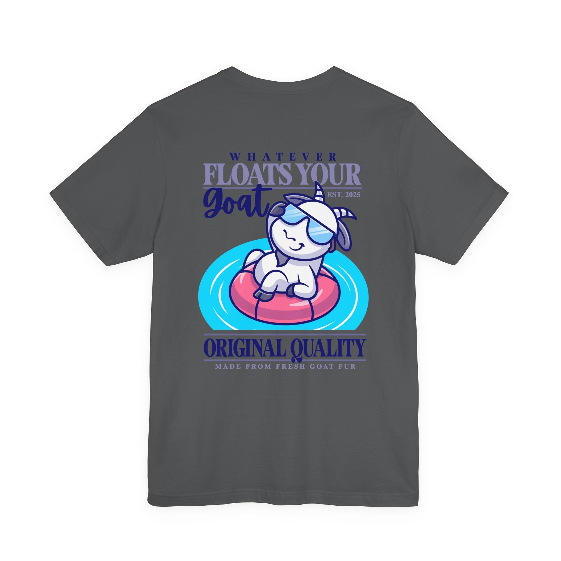 Relax in style with this fun and quirky t-shirt featuring a cool goat floating on an air tube in the water, sporting sunglasses and a laid-back attitude. The playful text “Whatever Floats Your Goat” adds a humorous twist perfect for animal lovers, summer vibes, and casual wear. Made from soft, breathable fabric, this tee is great for pool parties, beach days, or as a lighthearted gift for goat fans and anyone who loves to chill.